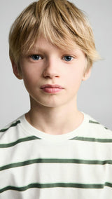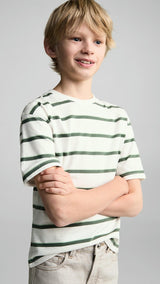 100% cotton fabric. Straight Design. Striped print. Round neck with ribbed finish. Short sleeve. Back length 63.5 cmProduct Code: 87013650-43