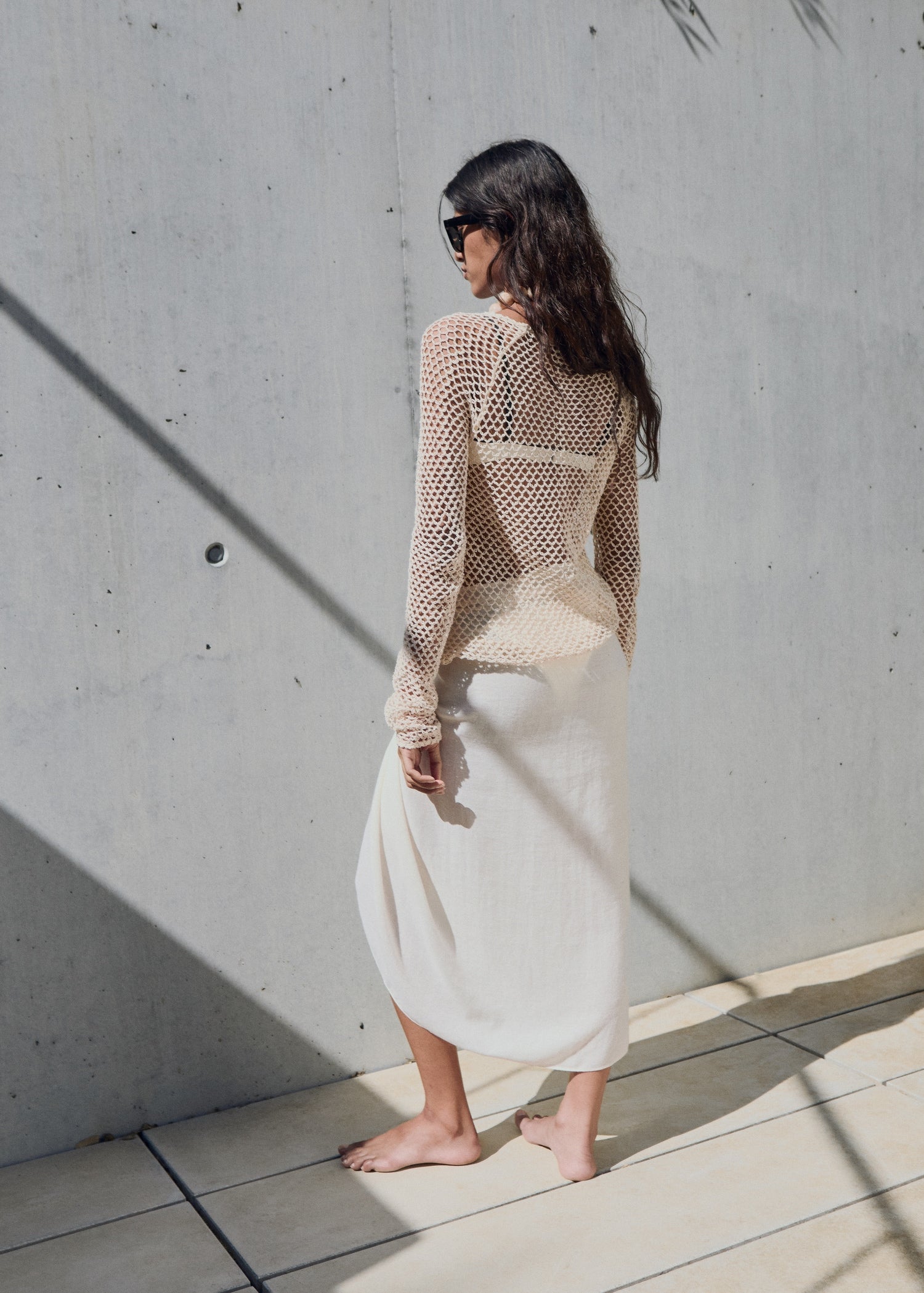 Cotton fabric. Crochet fabric. Straight Design. Round neck. Long sleeve. No Fastening.Product Code: 17041220-05
