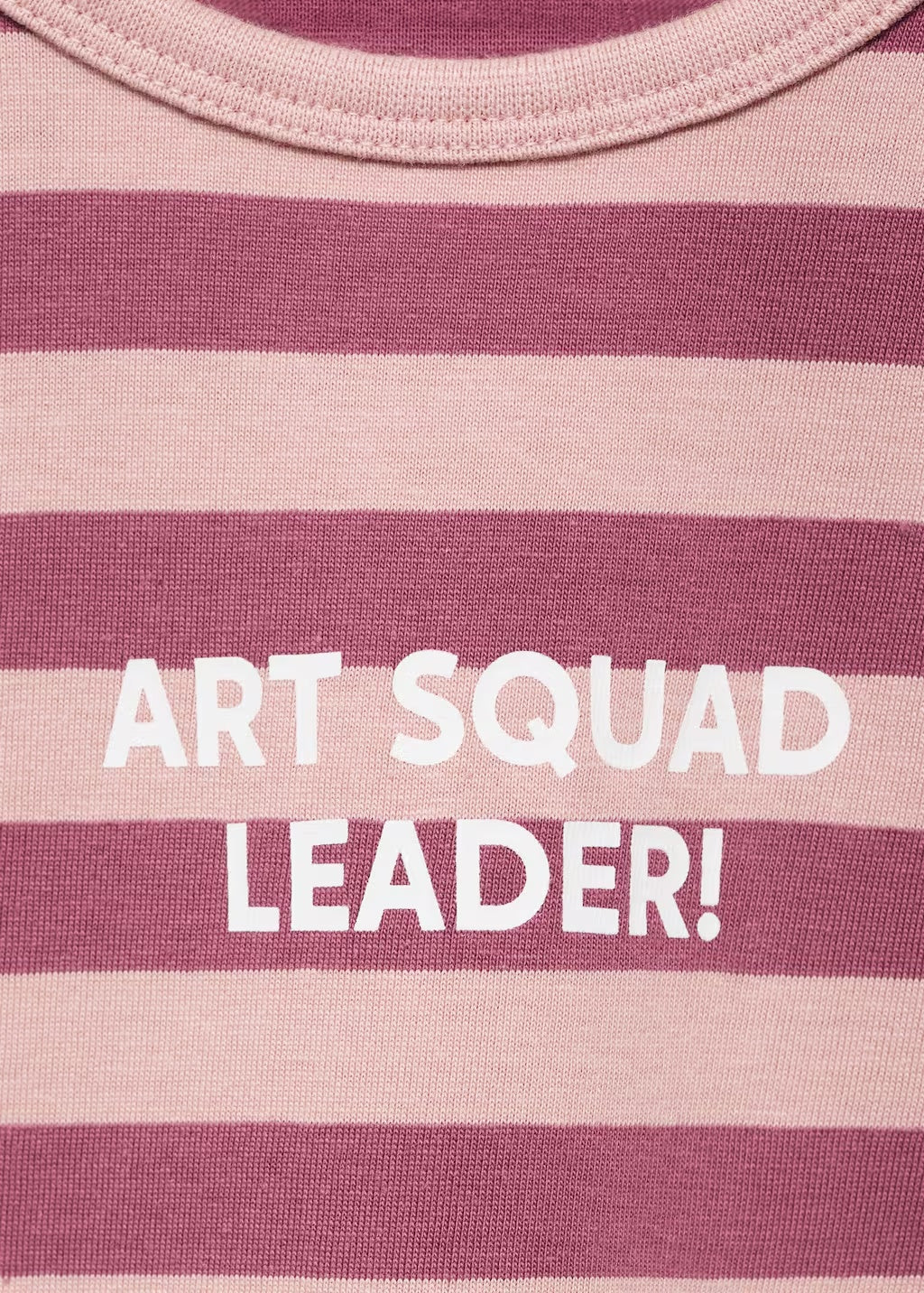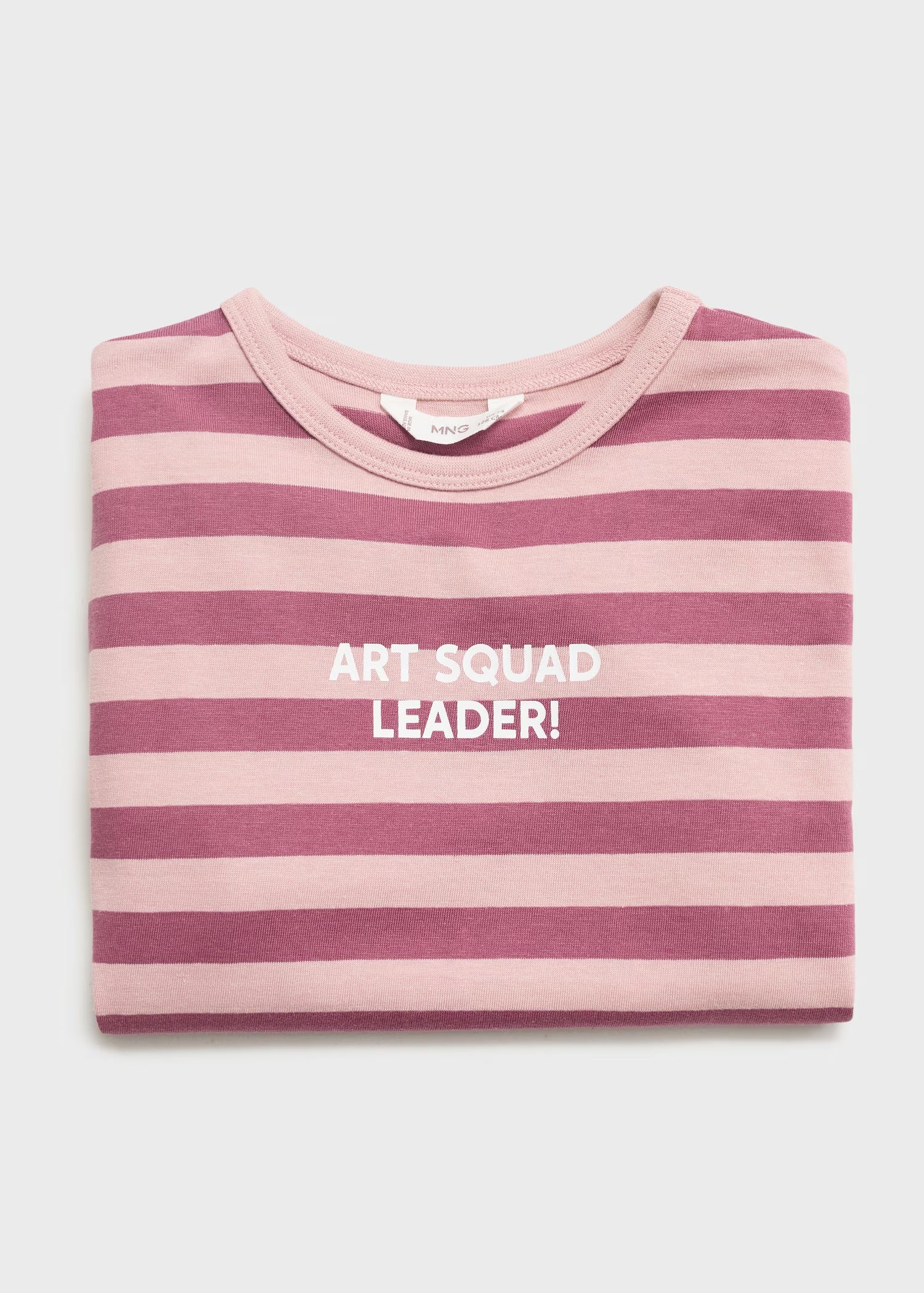 100% cotton fabric. Striped fabric. Straight Design. Printed design. Text stamped on the front. Round neck. Short sleeves.Product Code: 17003286-85