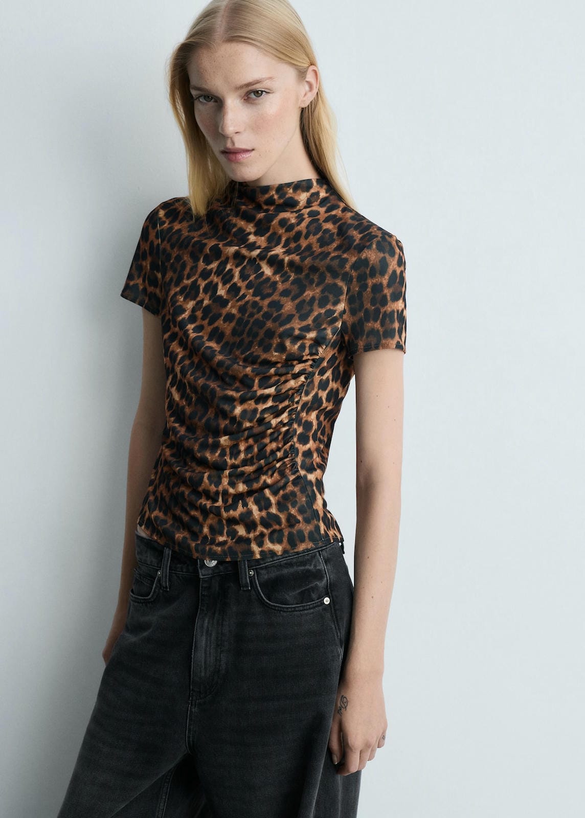Fitted design. Straight design. Leopard print. Animal print. High collar. Short sleeve. Gathered detail. The model is 180 cm and is wearing a size S. The model is 1.78 tall and is wearing a size 36. Side length 34.3 cm. Back length 63.1 cmProduct Code: 77006759-30
