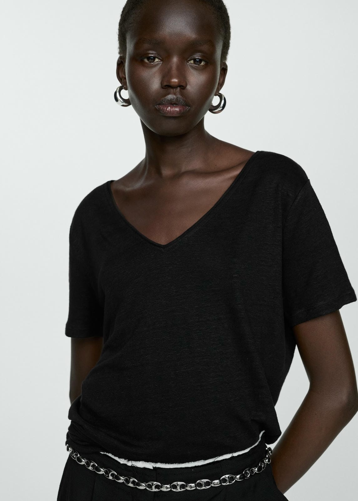 Mango t-shirt linito in black