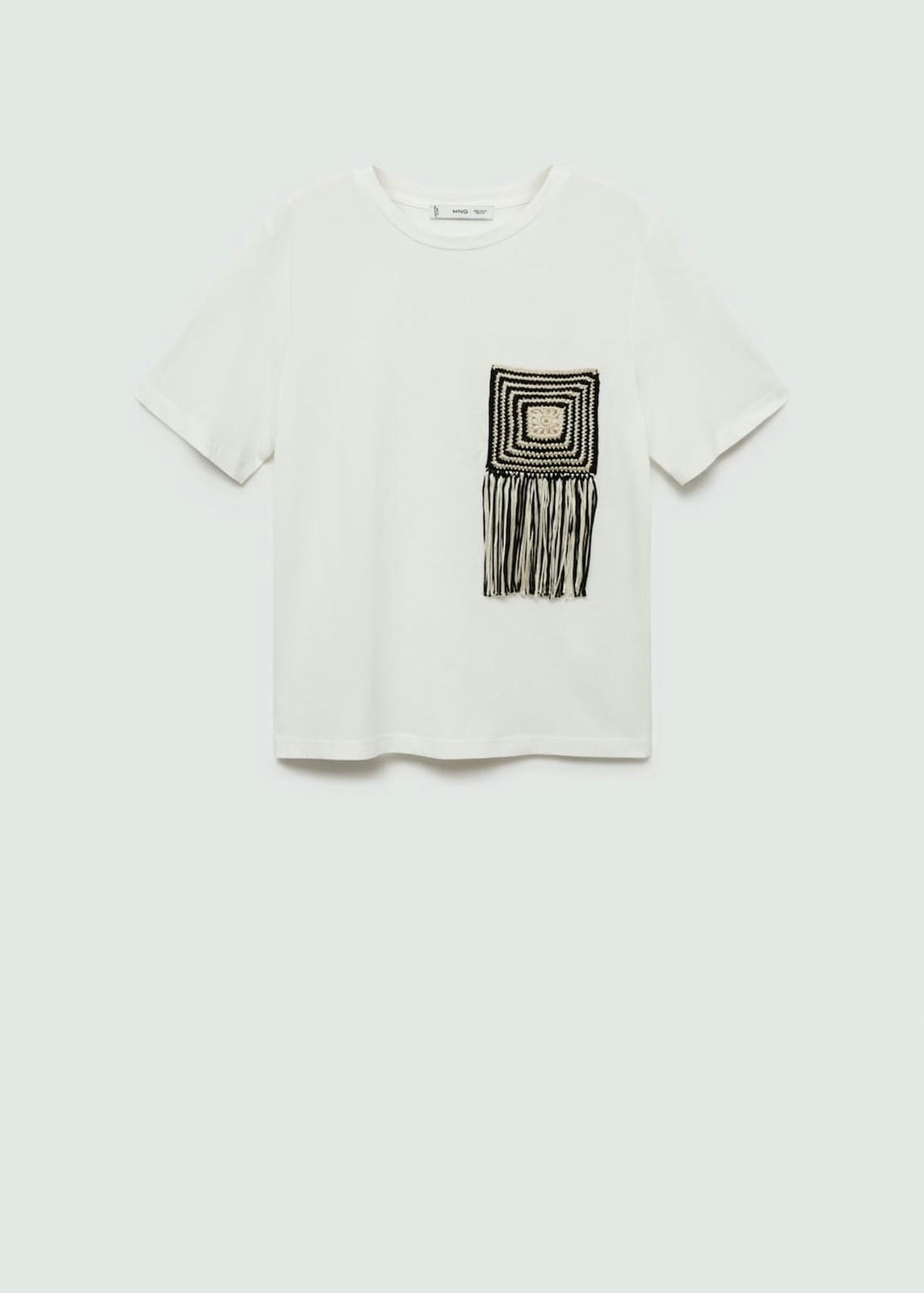 Straight design. Round neck. Short sleeve. Crochet detail. Fringe detail. 100% cotton fabric. Side length 37.8 cm. Back length 61.7 cmProduct Code: 77010359-01