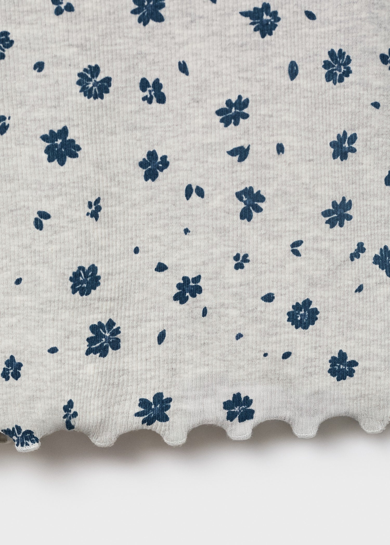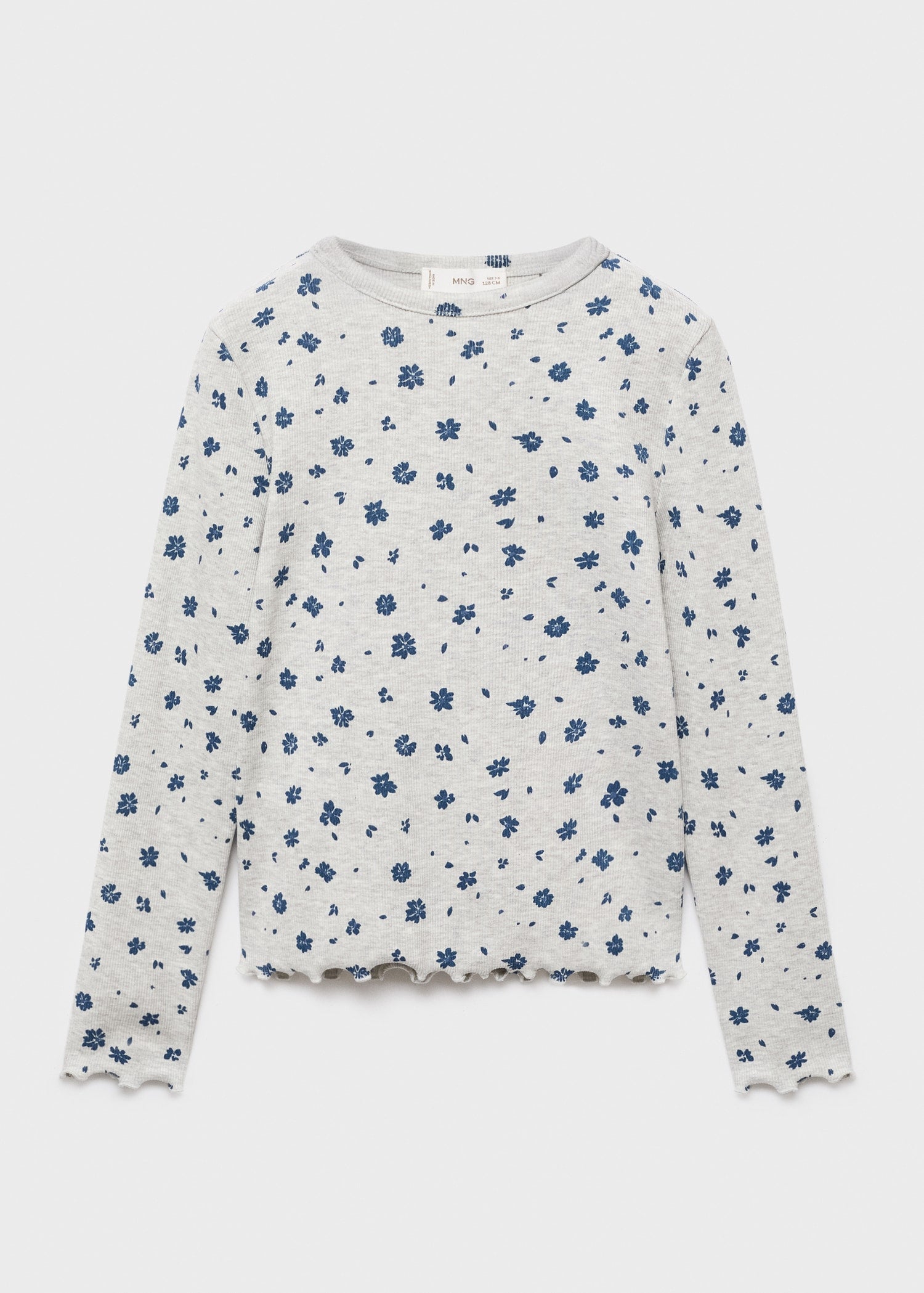 Cotton fabric. Stretch fabric. Ribbed design. Straight Design. Floral-print design. Round neck. Long sleeve. Scalloped hem.Product Code: 17005174-91