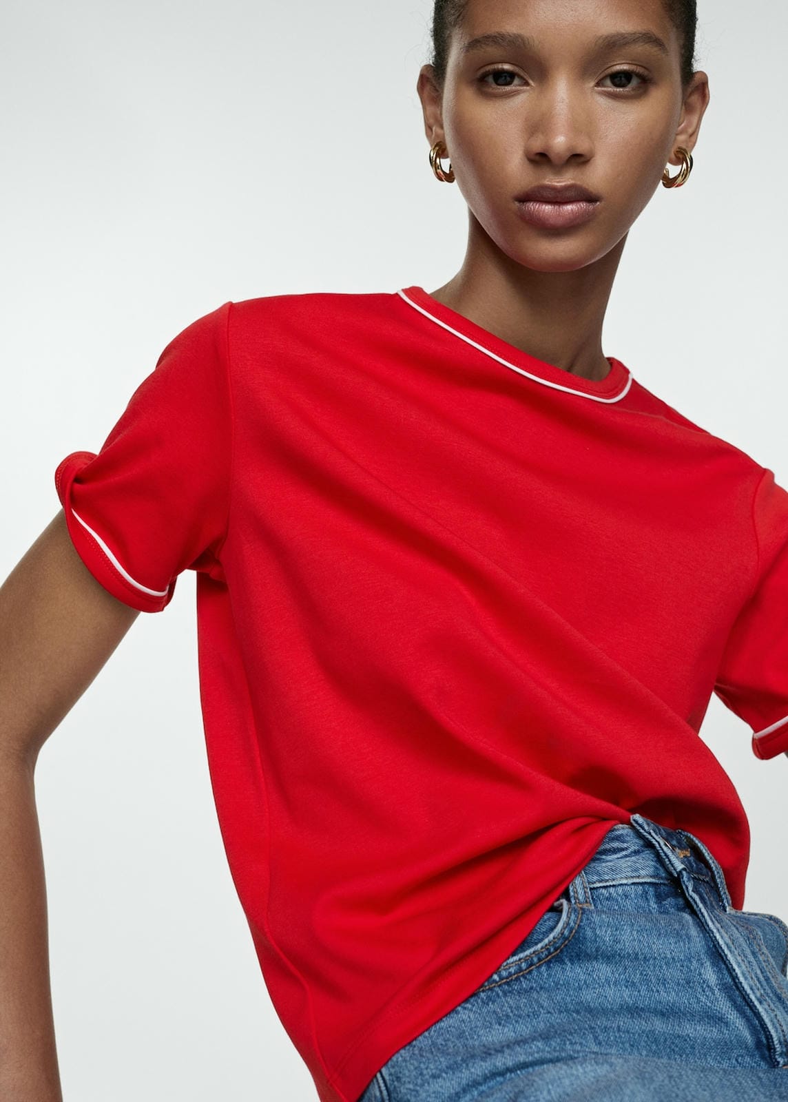 Straight design. Round neck. Short sleeve. Contrasting trims. 100% cotton fabric. Side length 39.3 cm. Back length 61.9 cmProduct Code: 77094069-70