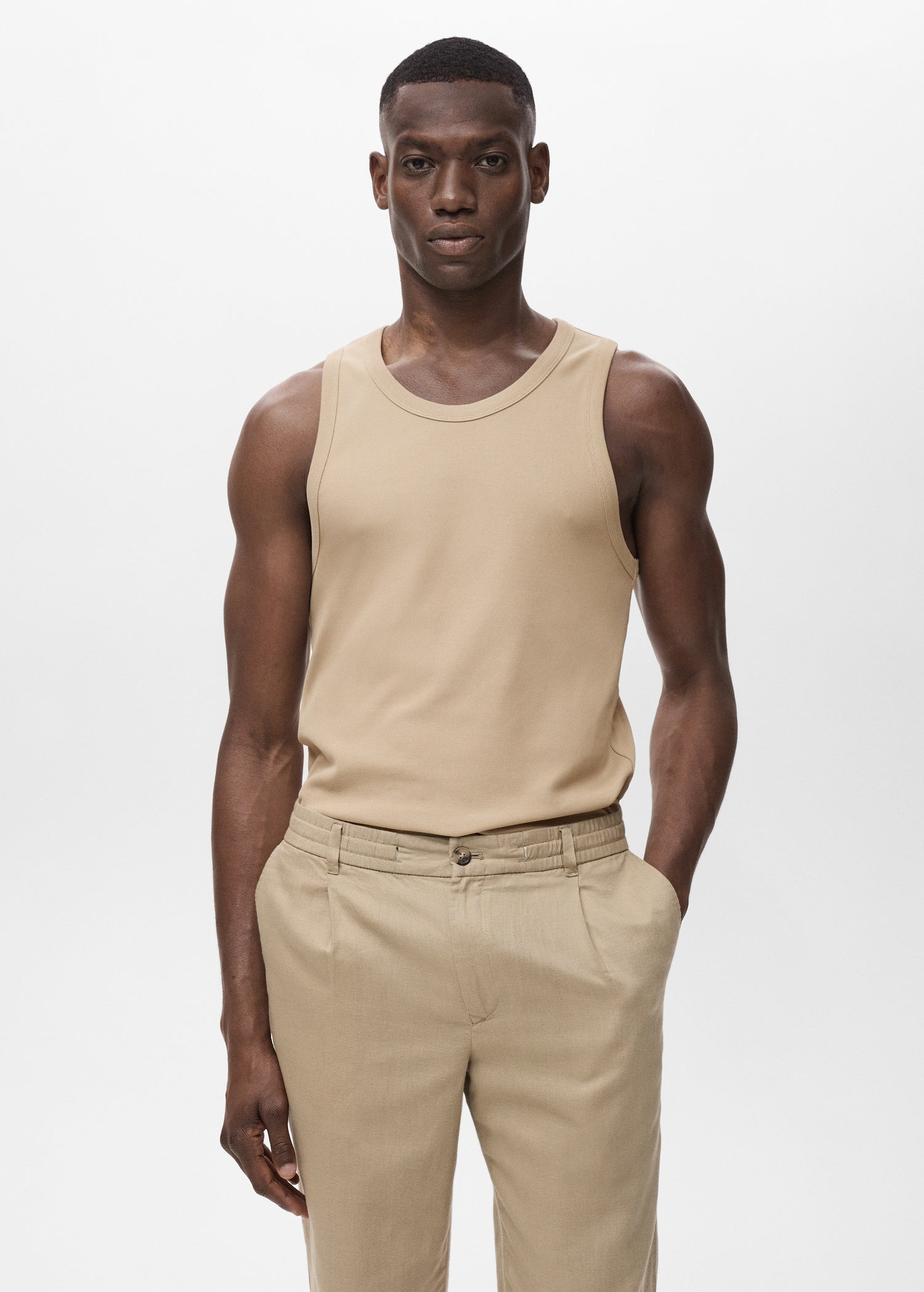 With a slim fit, this garment is crafted from cotton fabric. It features a sleeveless design and a round neckline. The ribbed knit fabric includes rib finishes at the neck, armholes and hem. The model is 190 cm tall and is wearing a size MProduct Code: 17011233-92
