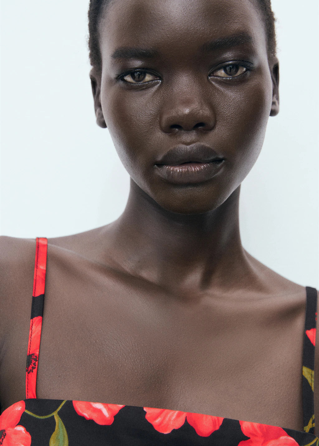 This top is crafted from cotton fabric, featuring a cropped design and a floral print. The low neckline and adjustable thin straps provide a personalised fit, while the elasticated ruched panel at the back ensures comfort. Complete the total look with the matching skirtProduct Code: 17022902-99
