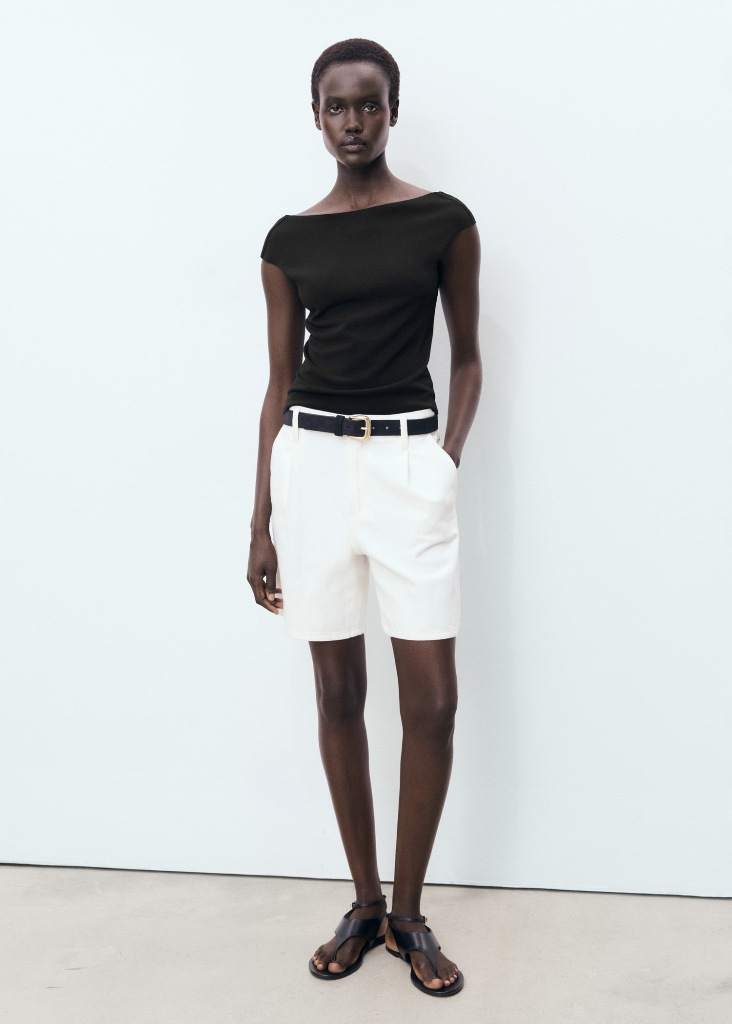 This fitted top is the ideal combination of simplicity and sophistication, perfect for a relaxed yet elegant style. Its refined bateau neckline and wide straps offer a classic silhouette, while the open back adds an unexpected touch of modernity. A versatile piece that stands out for its laid-back charm.Product Code: 17081235-99