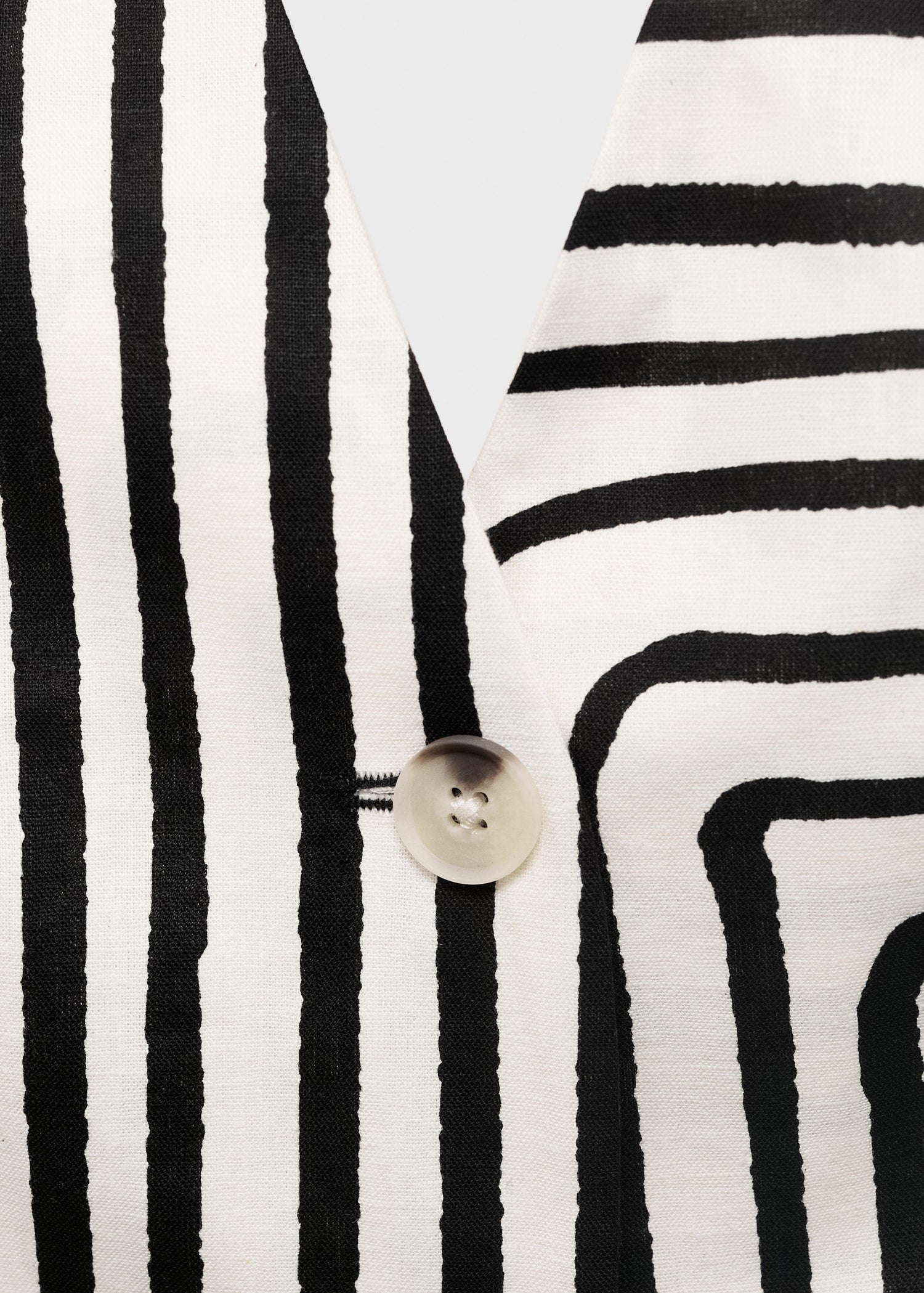 Crafted from a blend of cotton and linen, this waistcoat features a halter neck with a V-neckline. Its open back is fastened with a metal buckle, adding playfulness and uniqueness to the design. The geometric print is complemented by a front button fastening and a button closure at the neck. Total lookProduct Code: 17071150-05