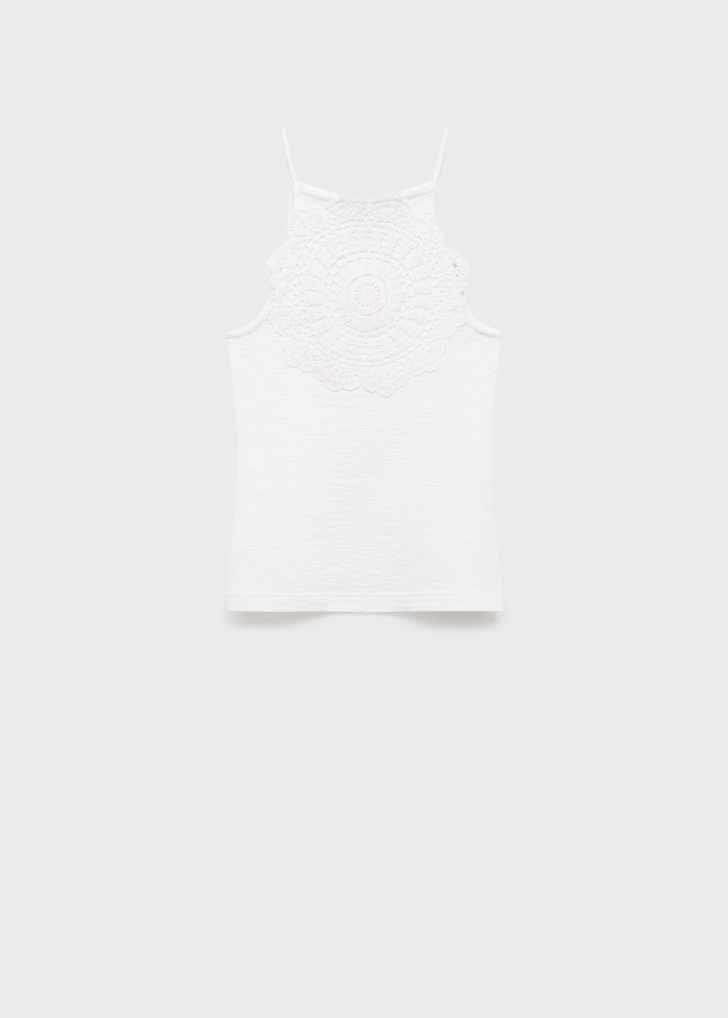 Tailored design. Halter neck. Sleeveless. Thin straps. Crochet appliqué. No fastening.Product Code: 17011223-02