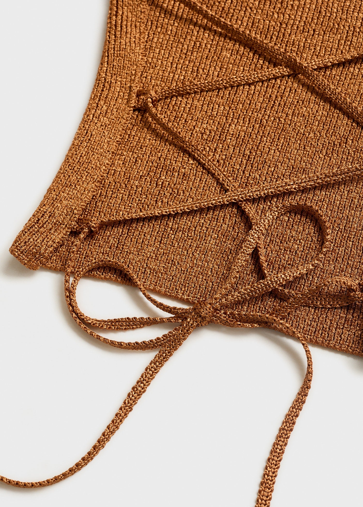 Crafted from lurex fabric and a chunky knit, this fitted crop design features a sleeveless scooped neckline. Thin straps criss-cross at the back, while the open back with a bow tie closure completes the lookProduct Code: 17042899-CO