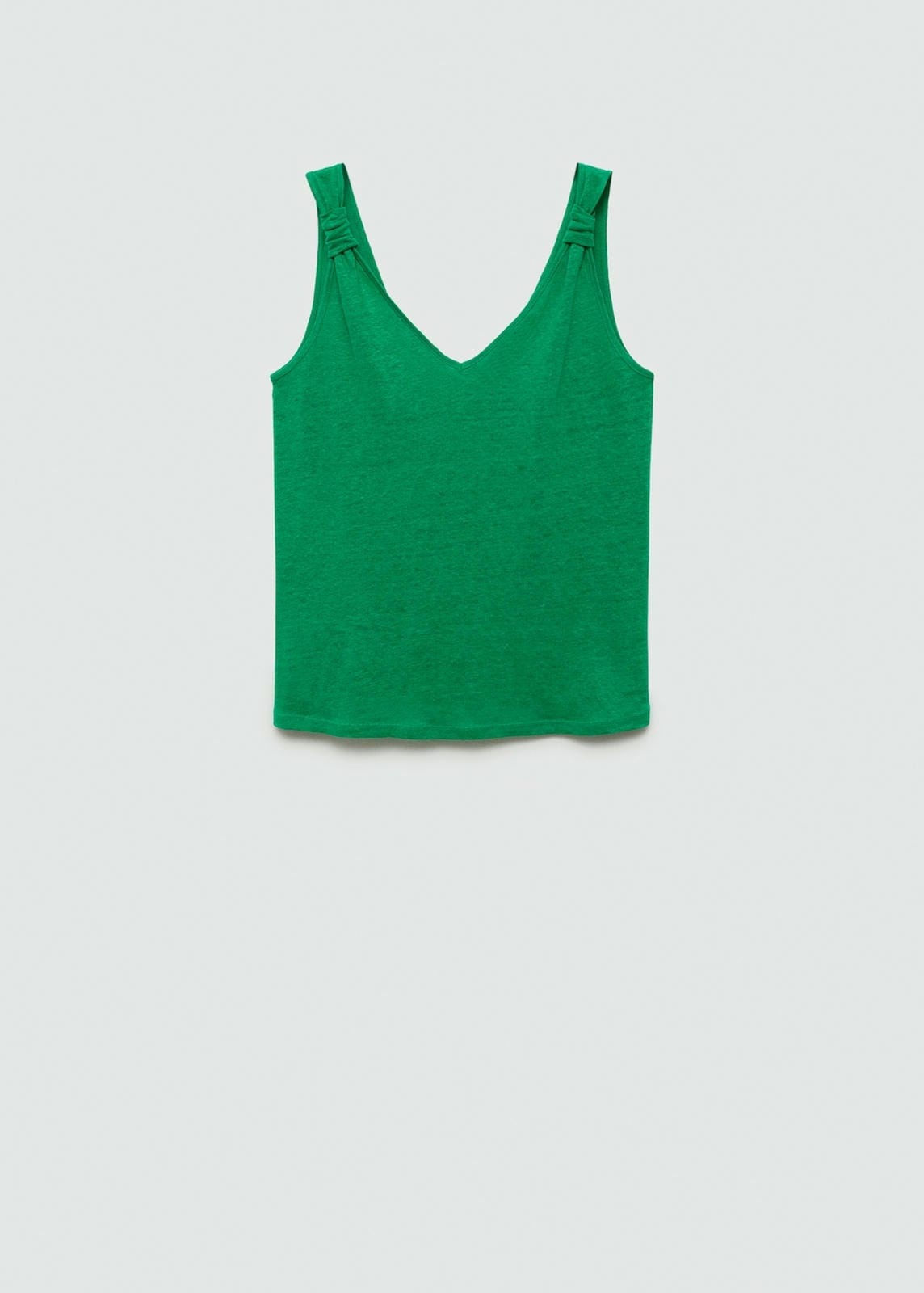 100% linen fabric. Straight design. V-neck. V-neckline in the back. Sleeveless. Thin straps. Decorative knotsProduct Code: 77030360-43