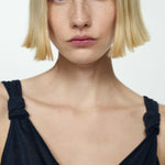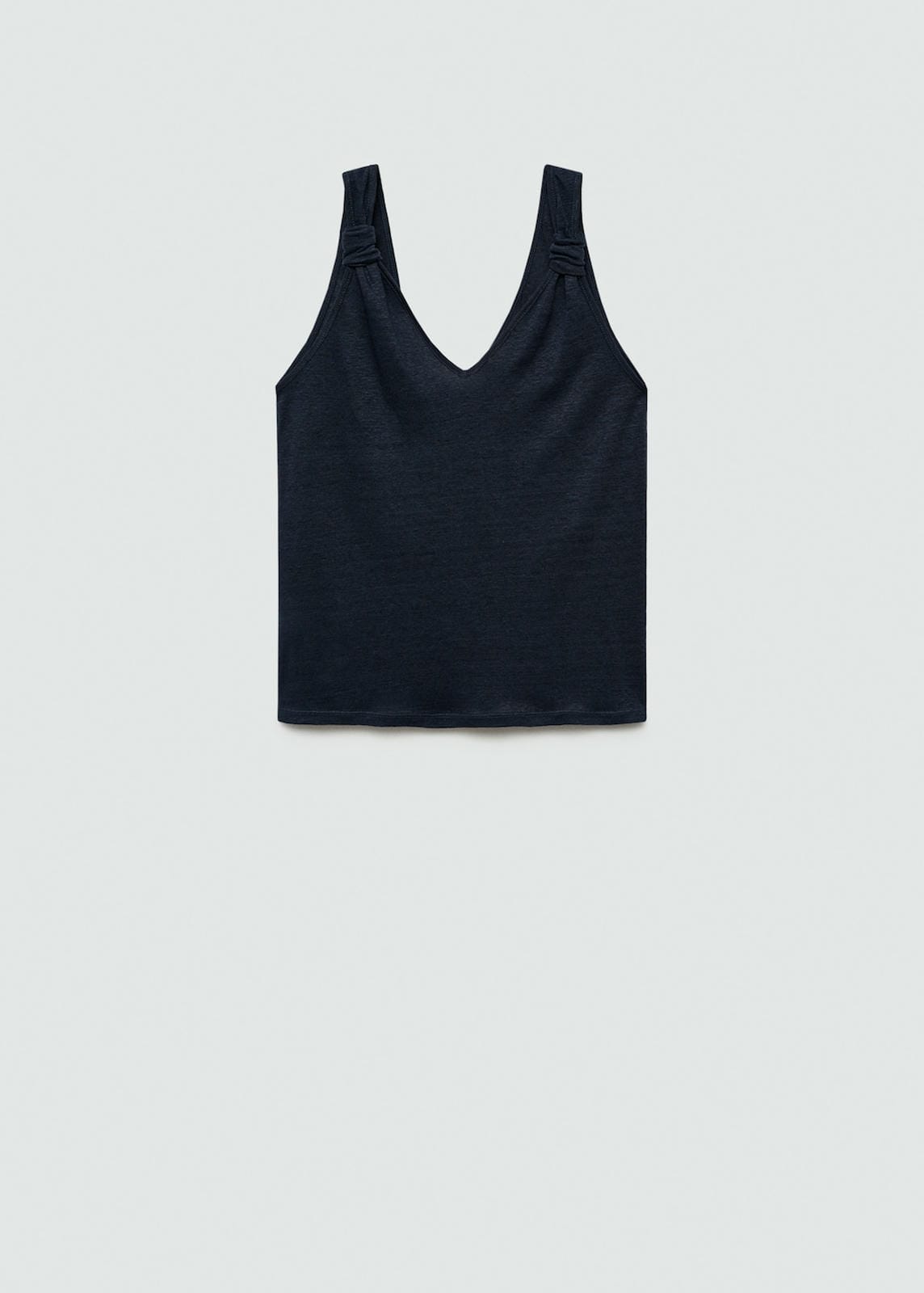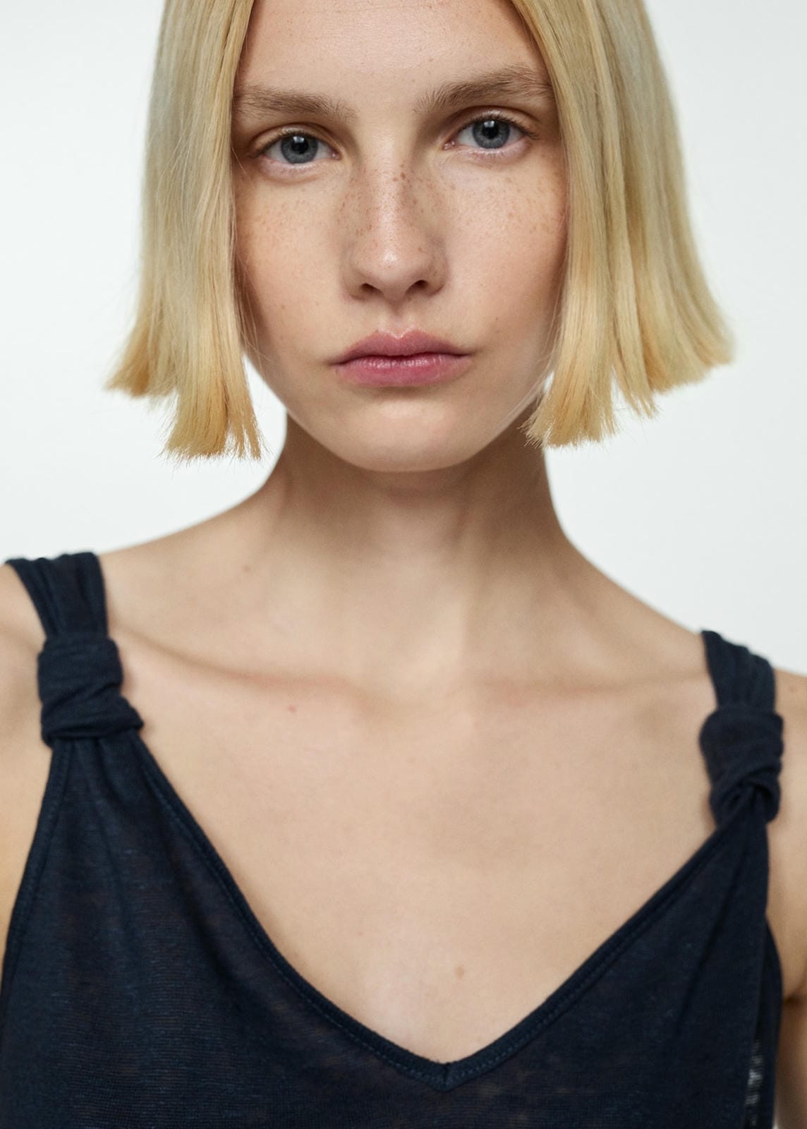 100% linen fabric. Straight design. V-neck. V-neckline in the back. Sleeveless. Thin straps. Decorative knotsProduct Code: 77030360-56