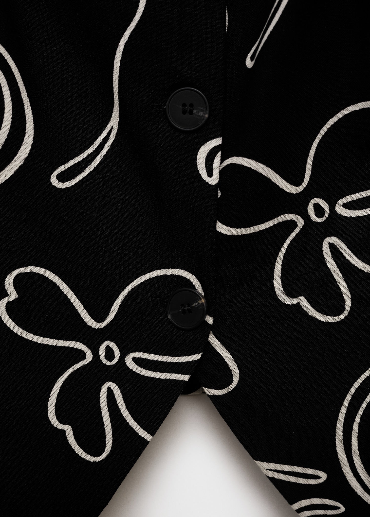 Crafted from a linen-blend fabric, this waistcoat embodies the essence of modern elegance with its tailored design and plunging neckline, which enhances the silhouette with sophistication. The floral print adds a distinctive and vibrant touch, while the front fastening ensures a flawless fit, making this piece an must for a refined and unique lookProduct Code: 17071163-99