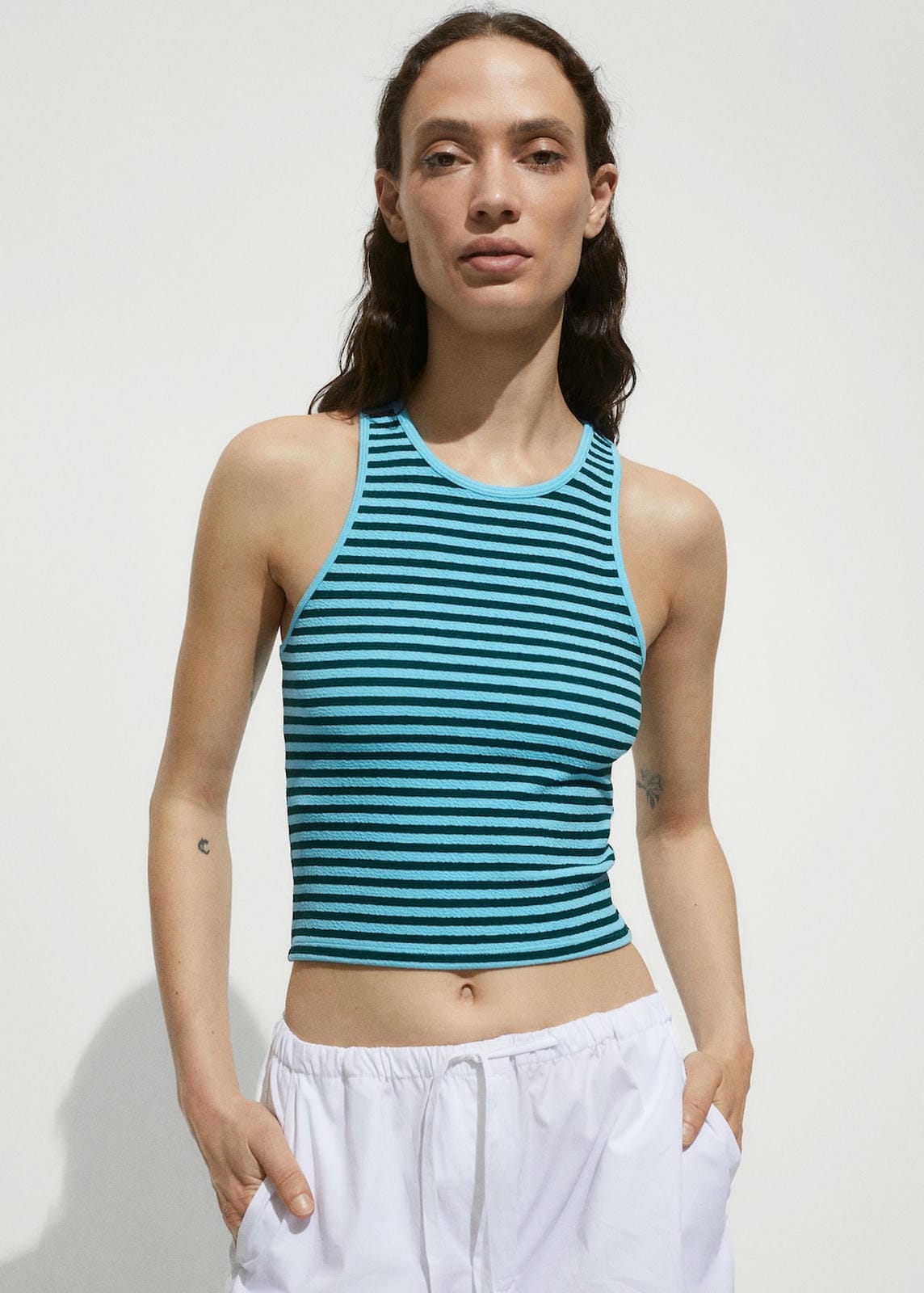 Knitted fabric. Cropped design. Striped print. Round neck. Sleeveless. Festival Season. Fitted designProduct Code: 77060365-52