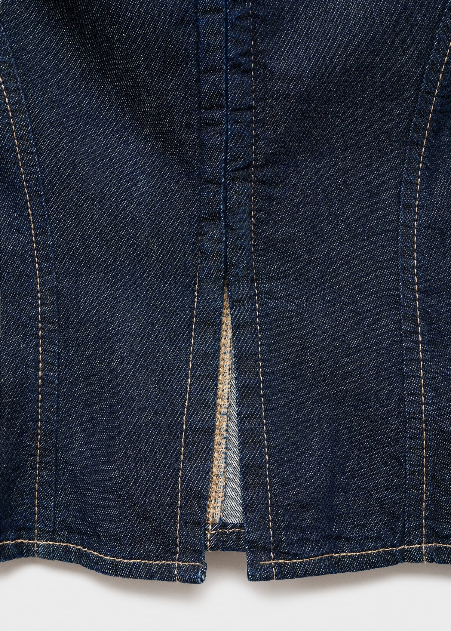 This sleeveless denim top features a fitted design with a shirt-style collar and contrasting stitching. It pairs perfectly with matching jeans, both in the same shade of denim, creating a coordinated and contemporary look.Product Code: 17073331-TS