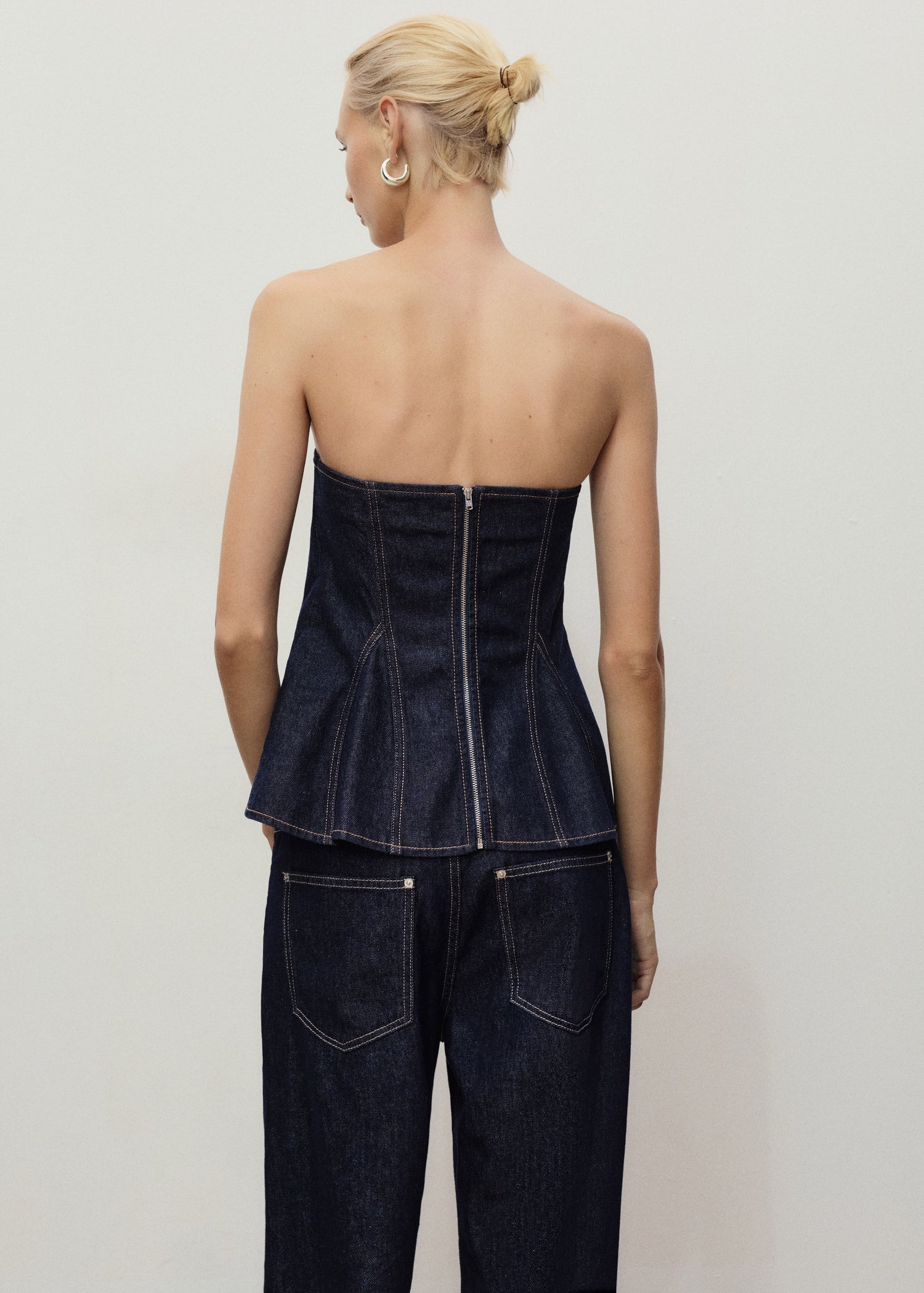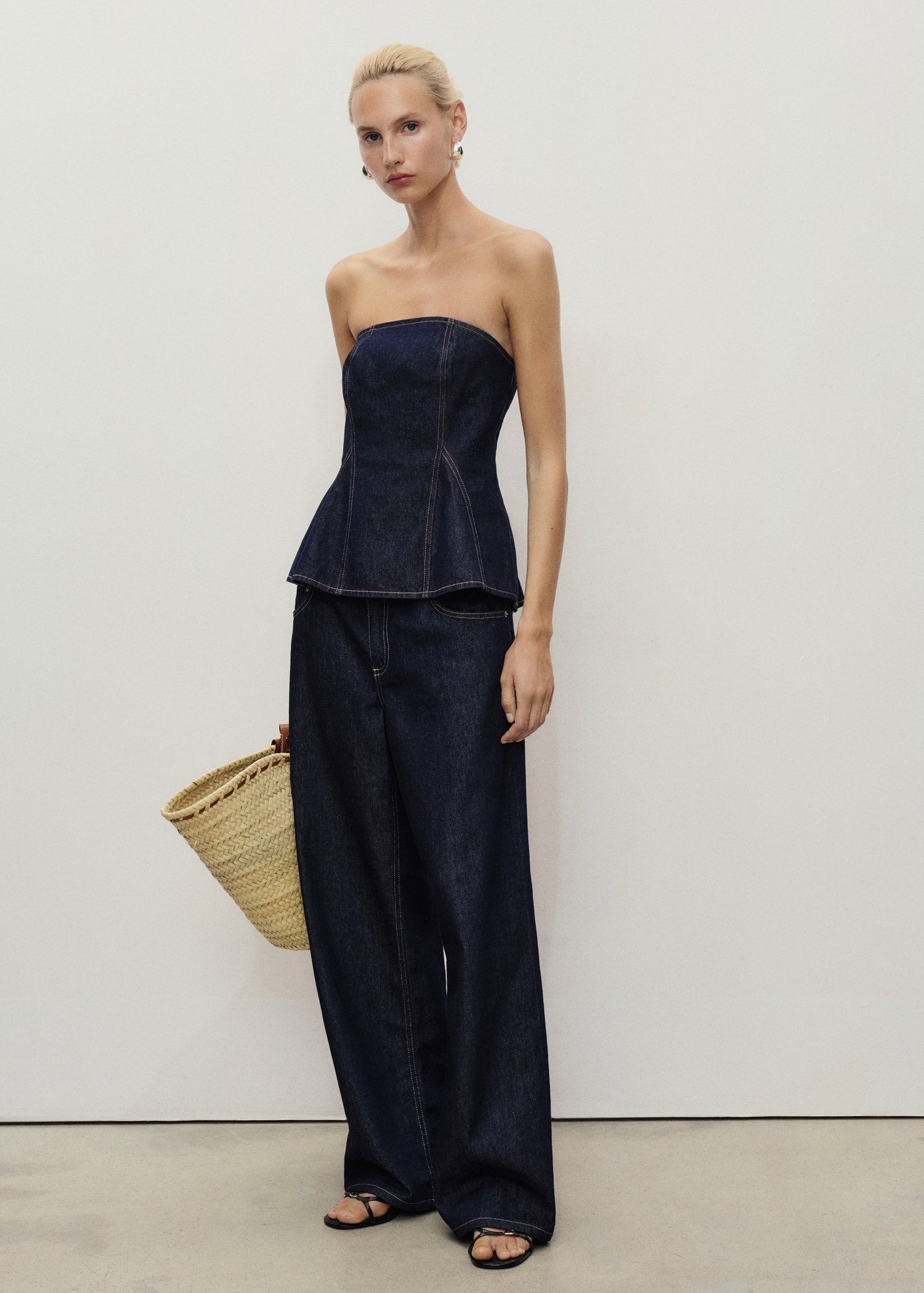 Crafted from cotton denim fabric, this top features a peplum cut and a bandeau design. It is completed with matching jeans, perfect for a total denim look.Product Code: 17093324-TS