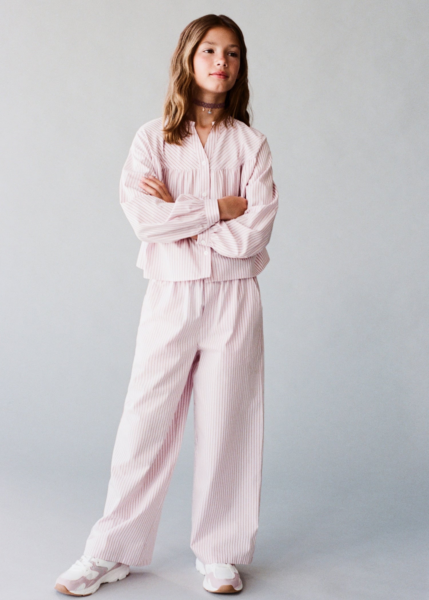 Crafted from 100% cotton fabric with stripes, this straight design offers comfort thanks to its elasticated waistband. It includes two side pockets, ideal for a versatile total look.Product Code: 17073283-85
