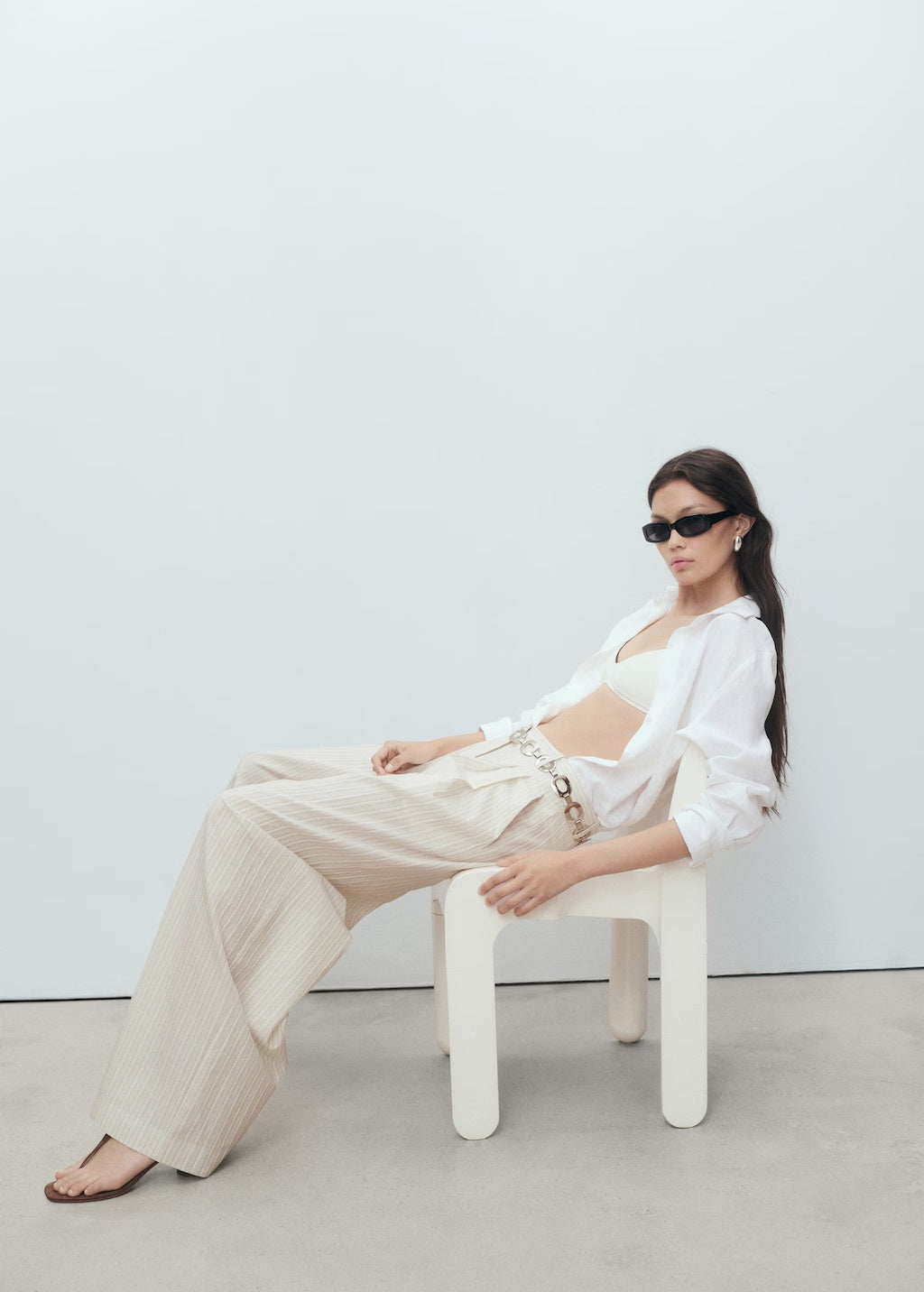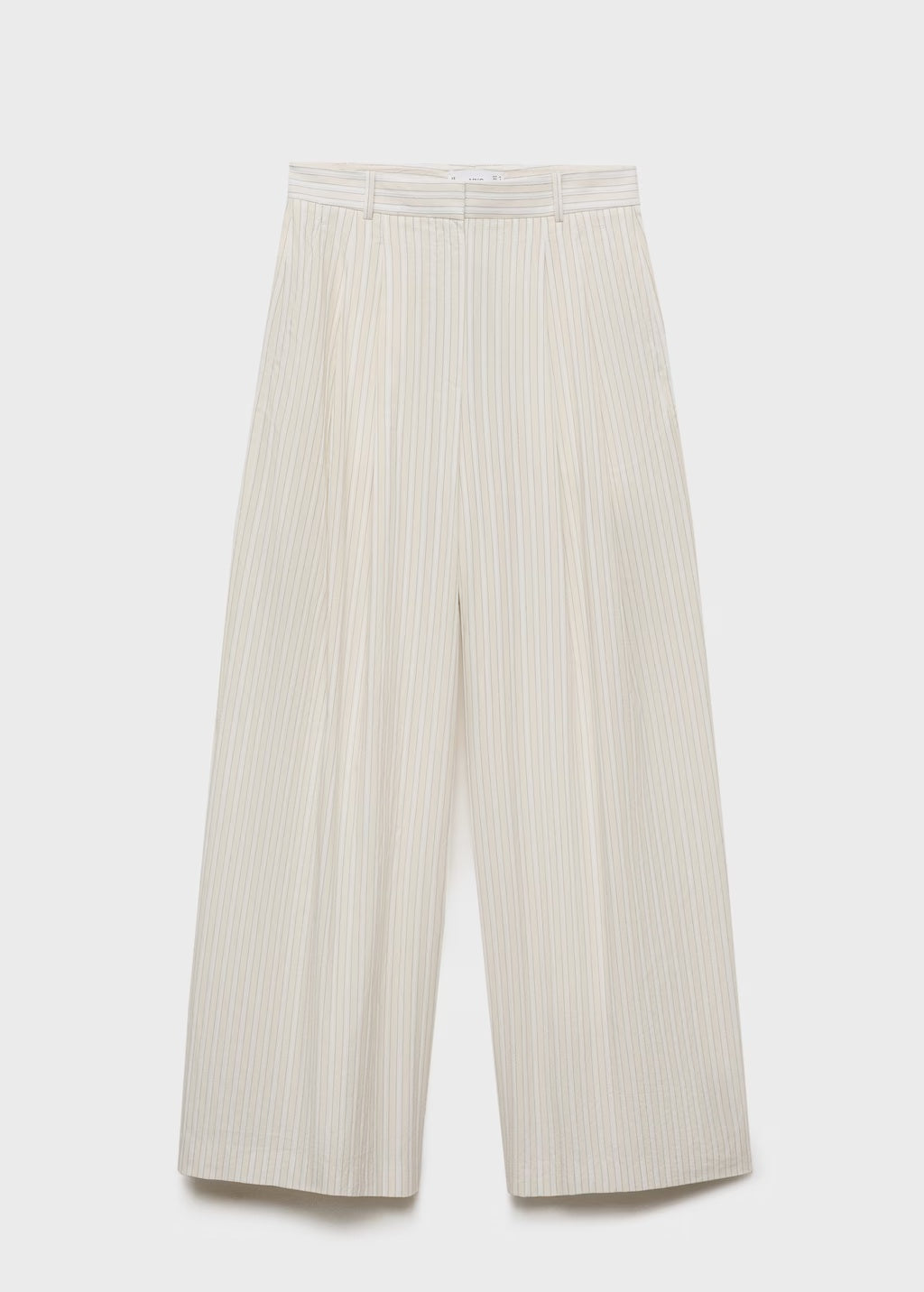 100% Cotton. Long design. Wide-leg design. Stripe design. Mid-rise. Belt loops. Front pleat detail. Two side pockets. Two welt pockets at the back. Hook and zip fastening.Product Code: 17022537-06