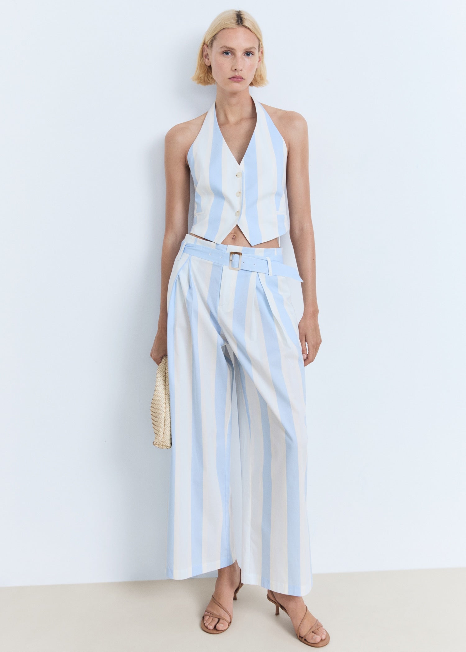 Cotton fabric. Culotte design. Mid-rise. Belt loops. Adjustable belt. Striped print. Concealed button, hook and zip fastening. 100% cotton lining. Total look.Product Code: 17031156-50