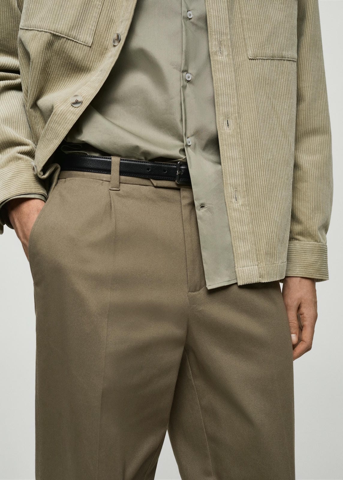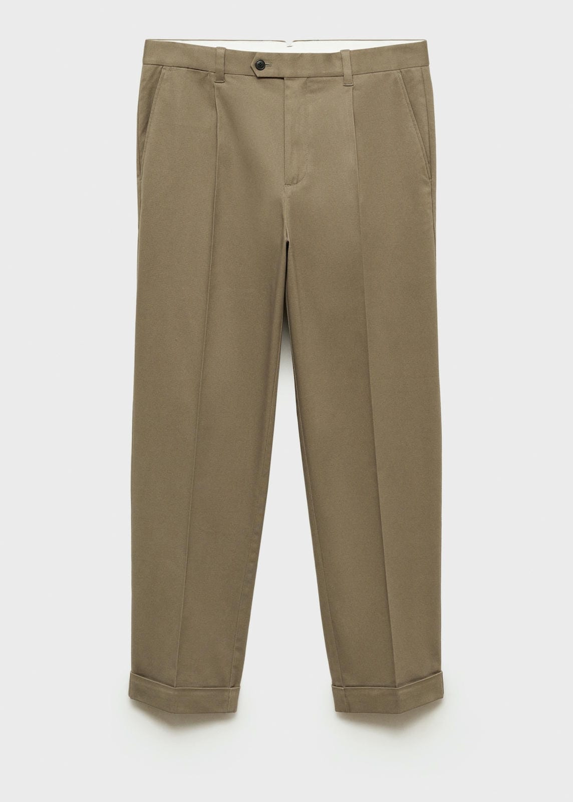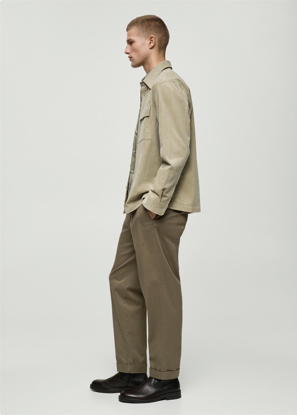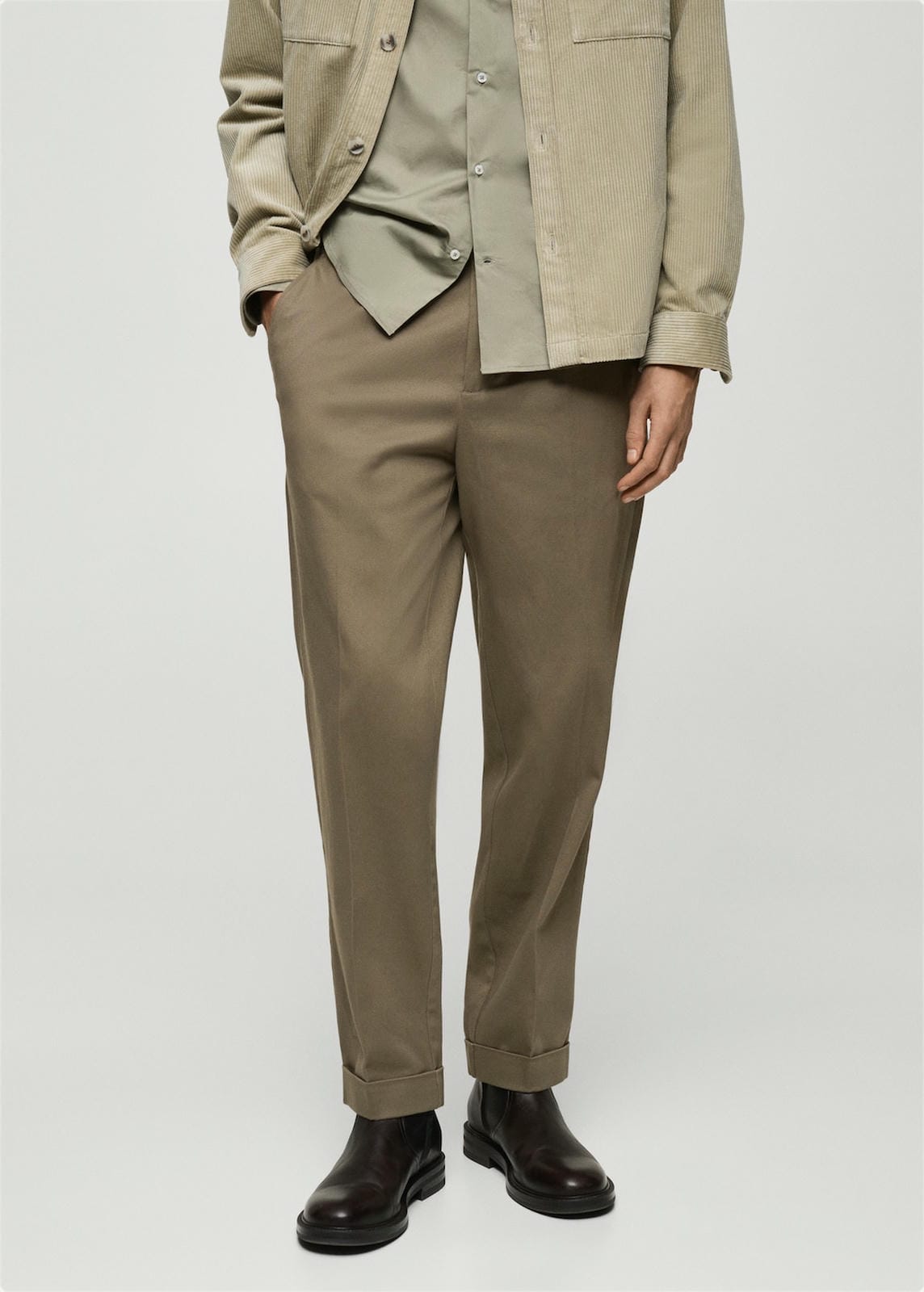 Regular fit. Cotton fabric. Ironed stripe detail at front and back. Belt loops. Double button fastening. Cuffed hem. The model is 185 cm tall and is wearing a size 42. Two welt pockets with button at the back. Inside leg measurement 76.4 cm. Side length 105.0 cmProduct Code: 87030579-37