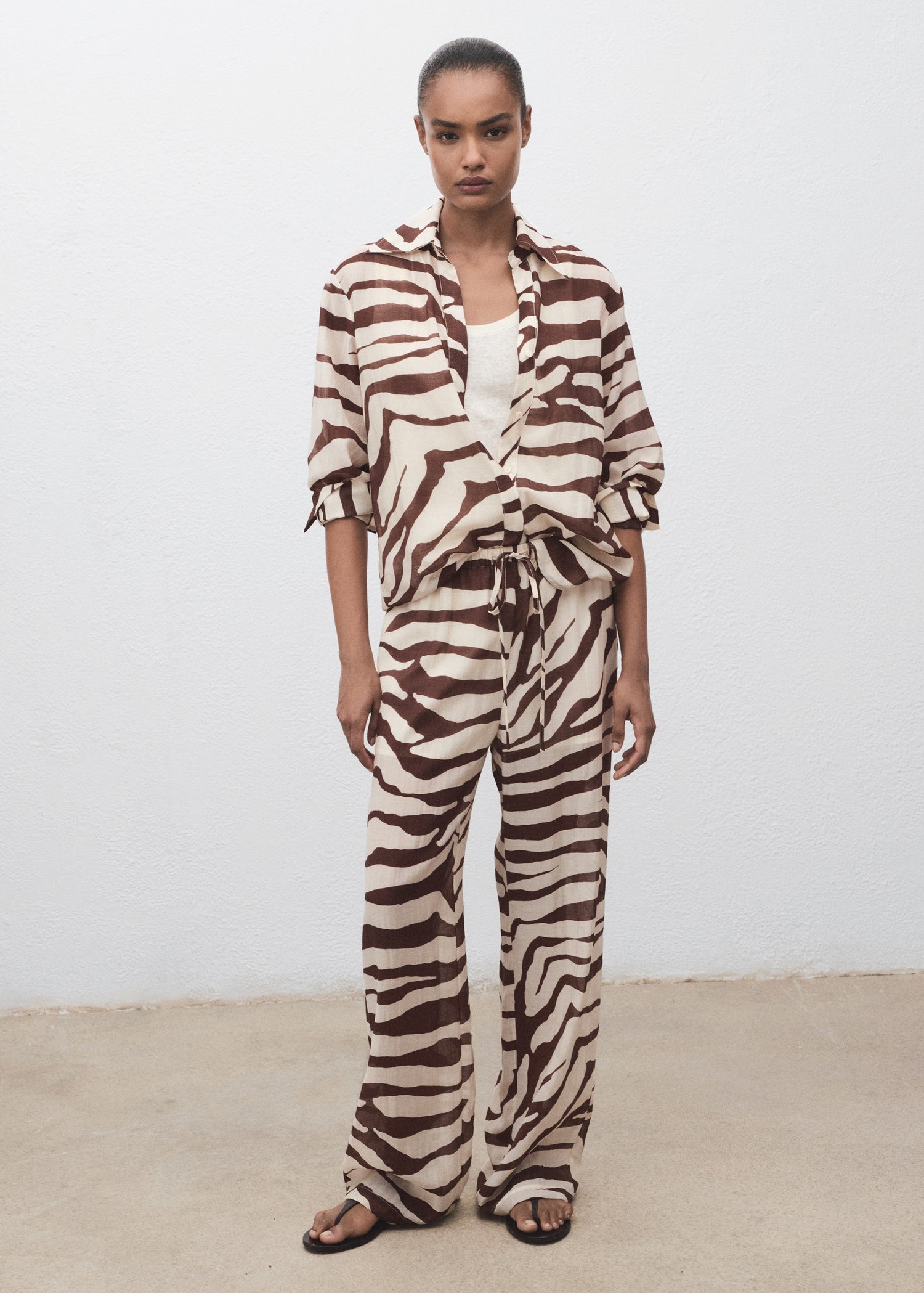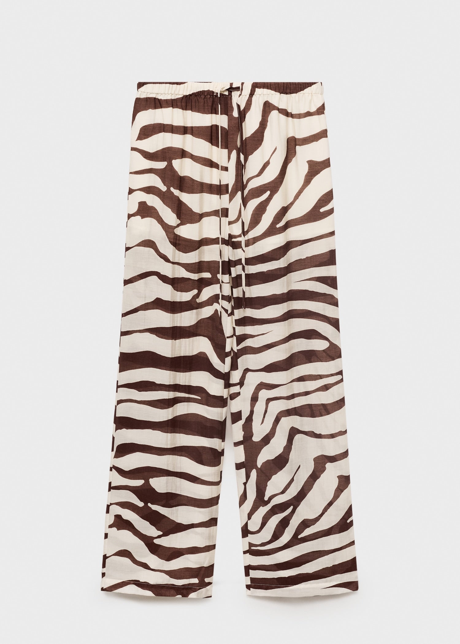 Fluid fabric. Long design. Straight Design. Zebra print. Mid-rise. Elastic waist with drawstring. No Fastening. 100% cotton lining. Total look.Product Code: 17051160-05
