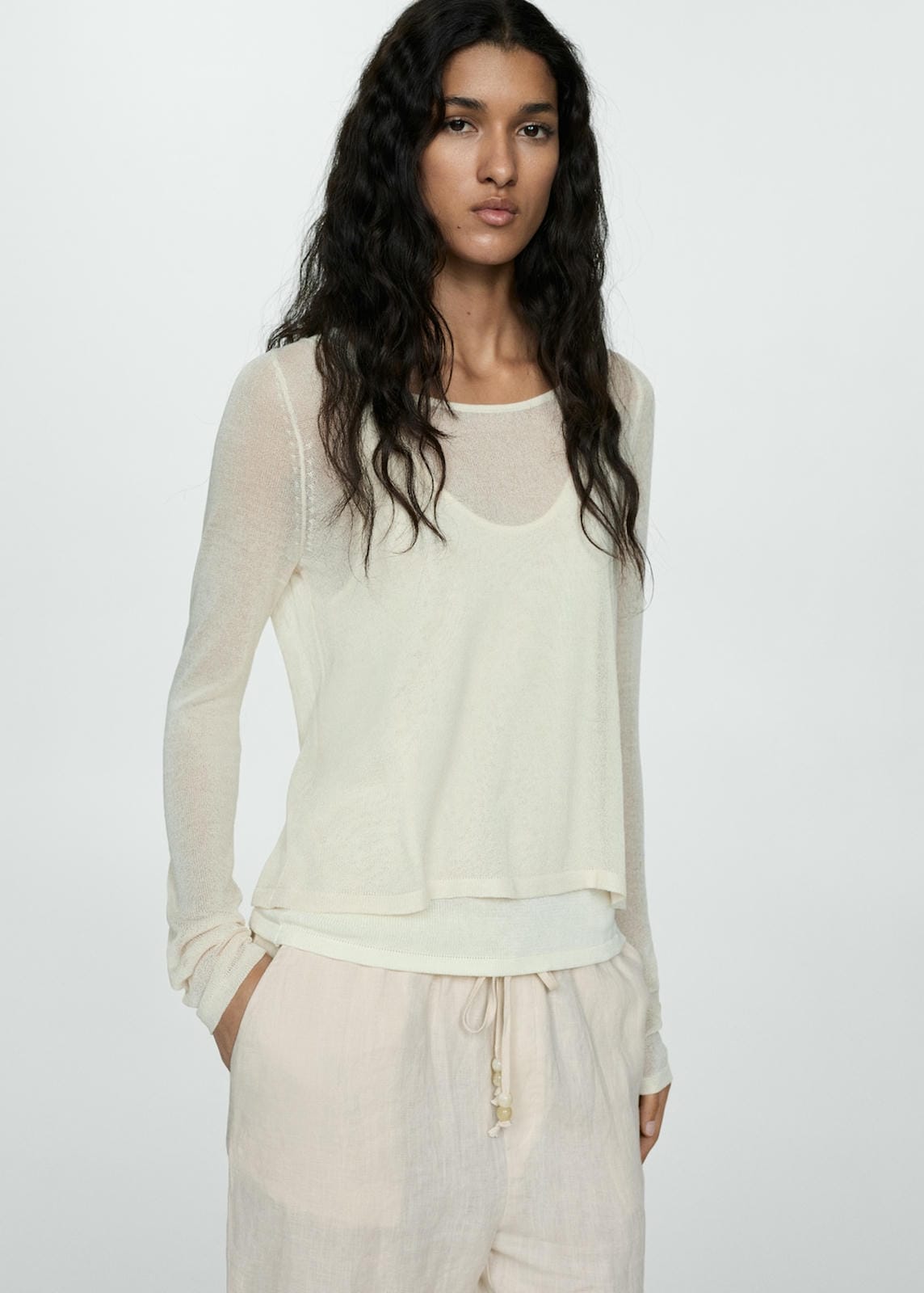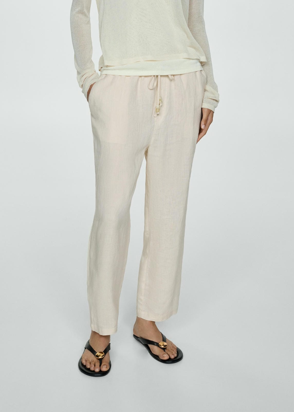 Mango trousers linen in raw-unbleached