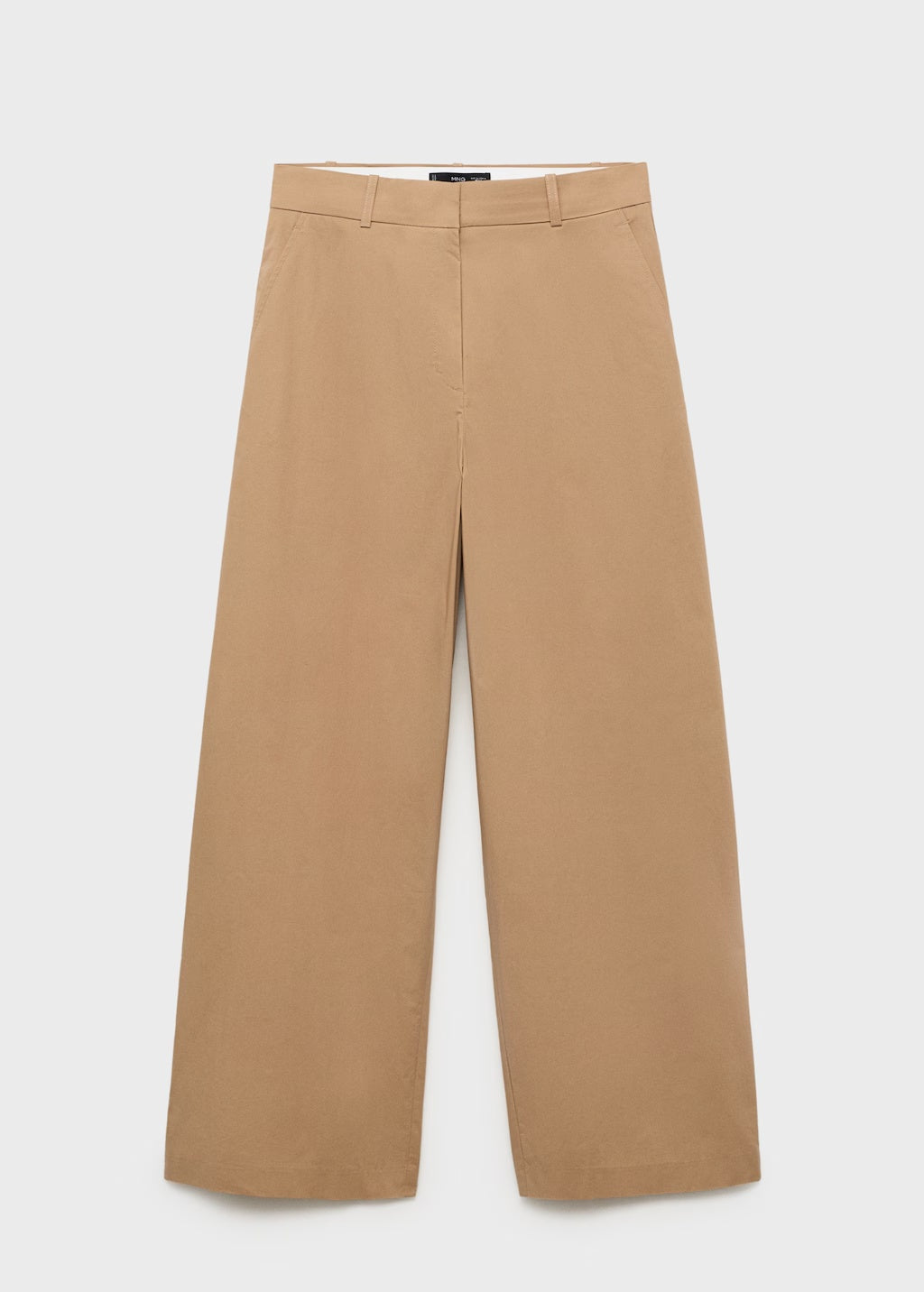 Cotton fabric. Long design. Wide-leg design. Mid-rise. Belt loops. Two side pockets. Two welt pockets at the back. Concealed button, hook and zip fastening. 100% cotton lining.Product Code: 17012031-09