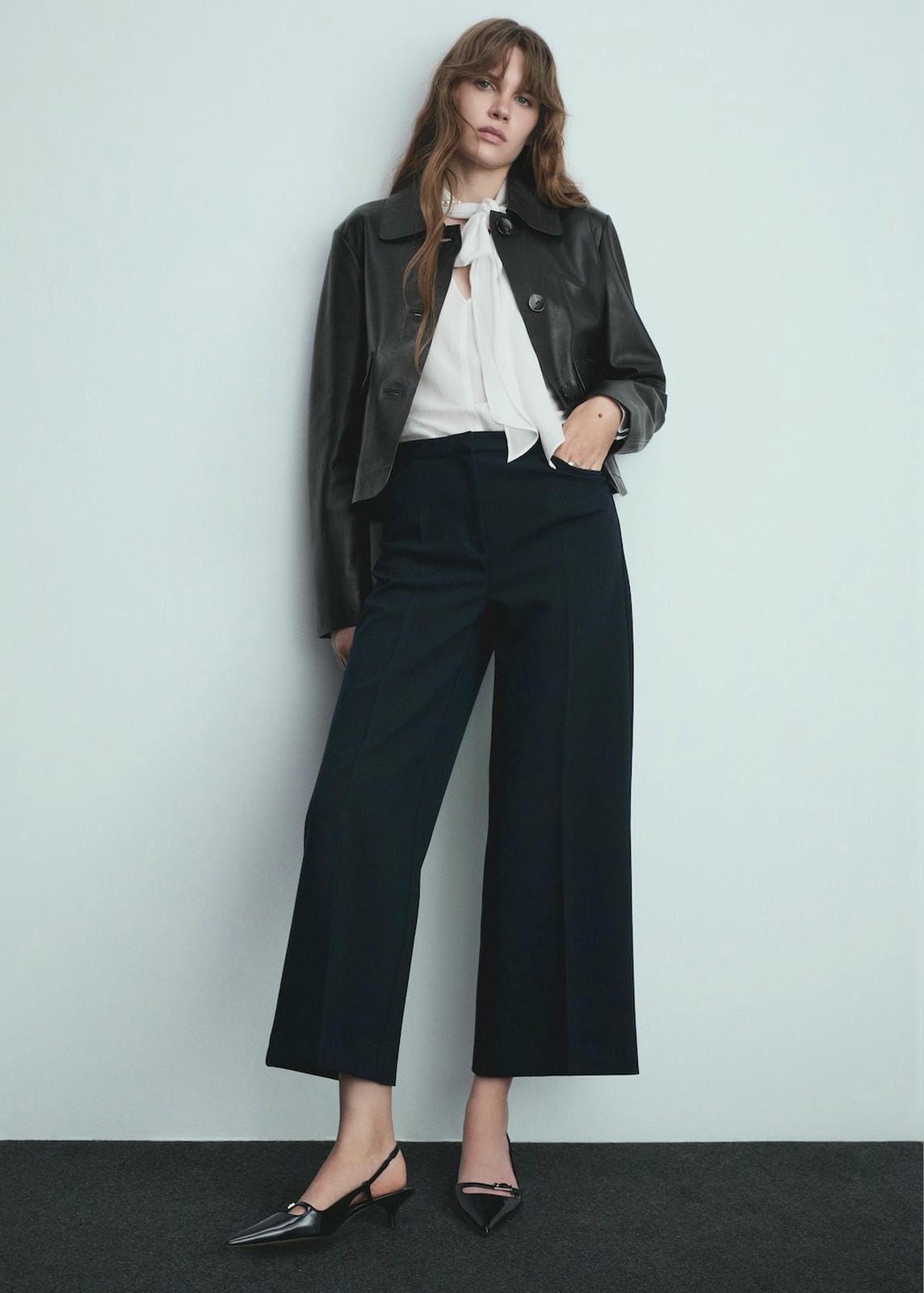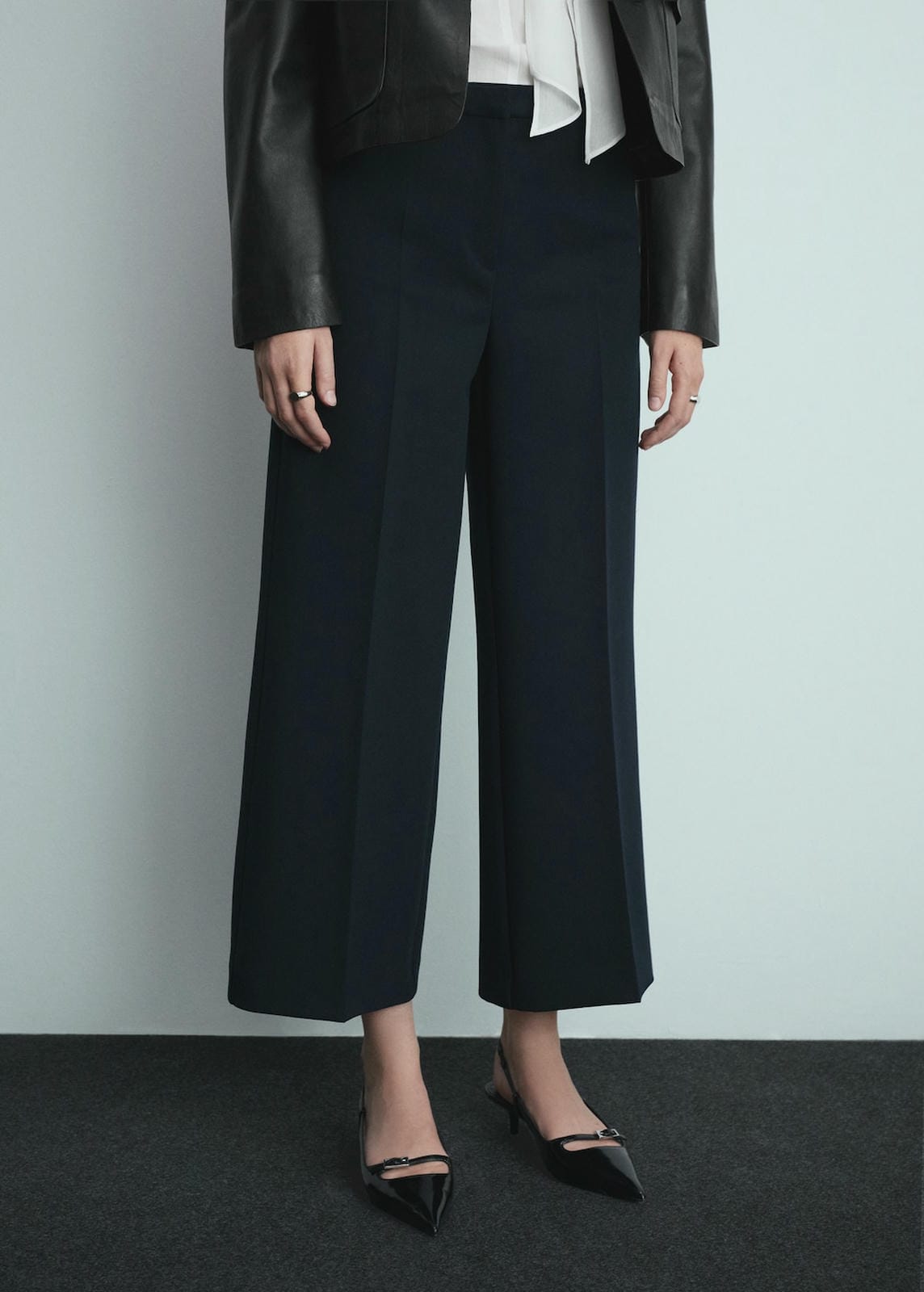 Cropped design. Long design. Palazzo design. Wide-leg design. Two side pockets. Two welt pockets on the back. Concealed button, hook and zip fastening. The model is 1.78 tall and is wearing a size 36. Medium waist. Inside leg measurement 70.2 cm. Side length 99.4 cmProduct Code: 77066762-56