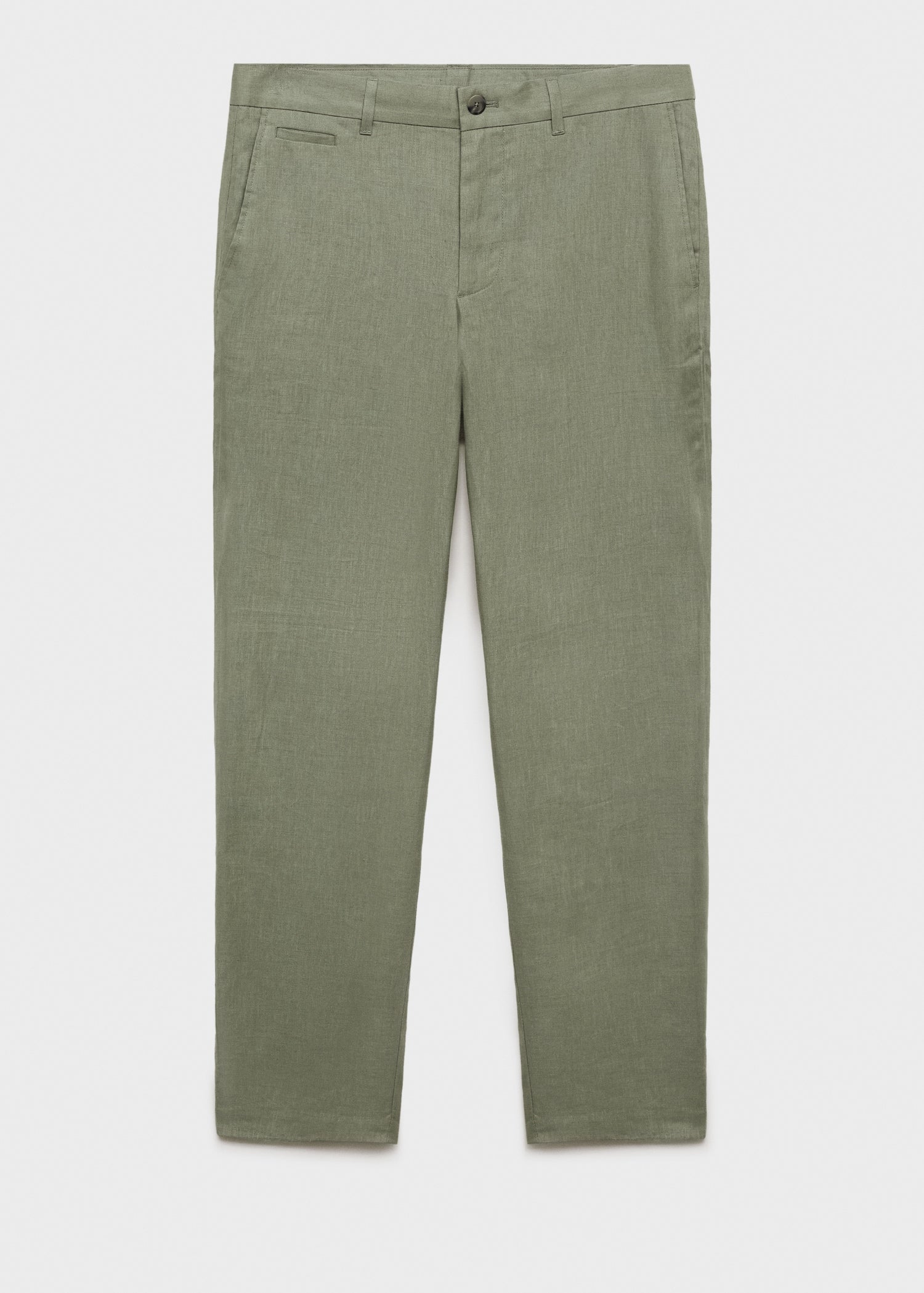 100% linen fabric. Slim Silhouette. Belt loops. Double button and zip closure. Two side pockets. Coin pocket. Two welt pockets with button at the back. The blue colour is an online exclusive. Slim fit. Front fastening with double-breasted buttons and zip. Coin pocket at hip height. Two front pockets. Two welt pockets with button at the back.Product Code: 17041143-43