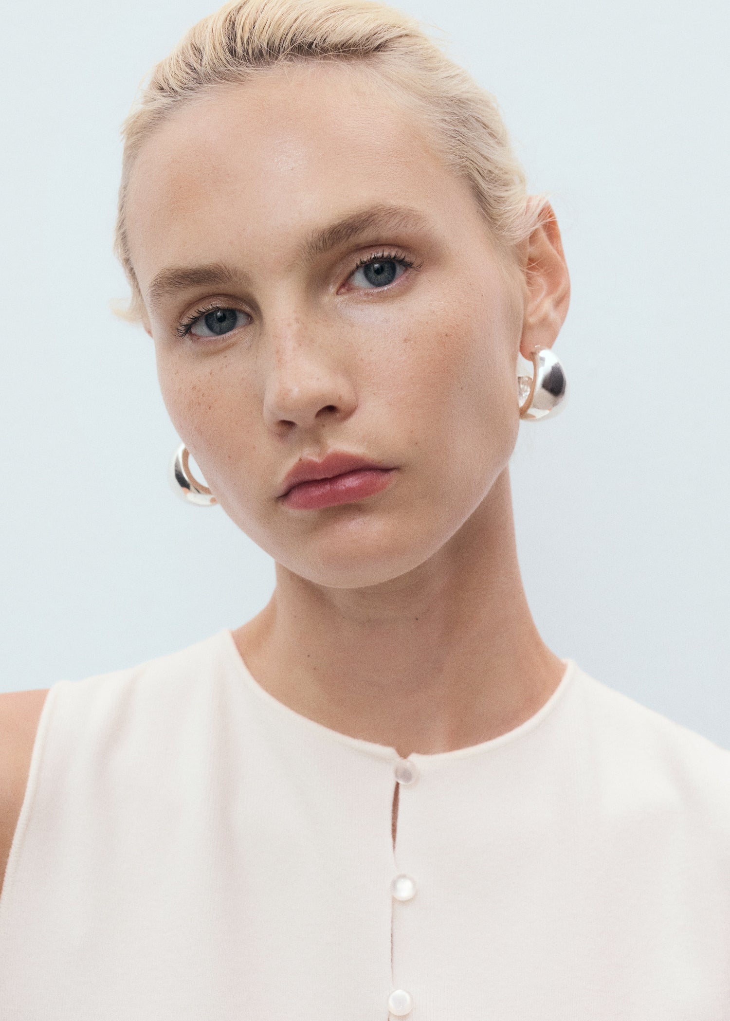 This waistcoat crafted from fine-knit fabric features a minimalist design. It has a round neckline and a row of small buttons at the front, allowing it to be worn open or closed. Perfect for a comfortable and timeless styleProduct Code: 17082906-09