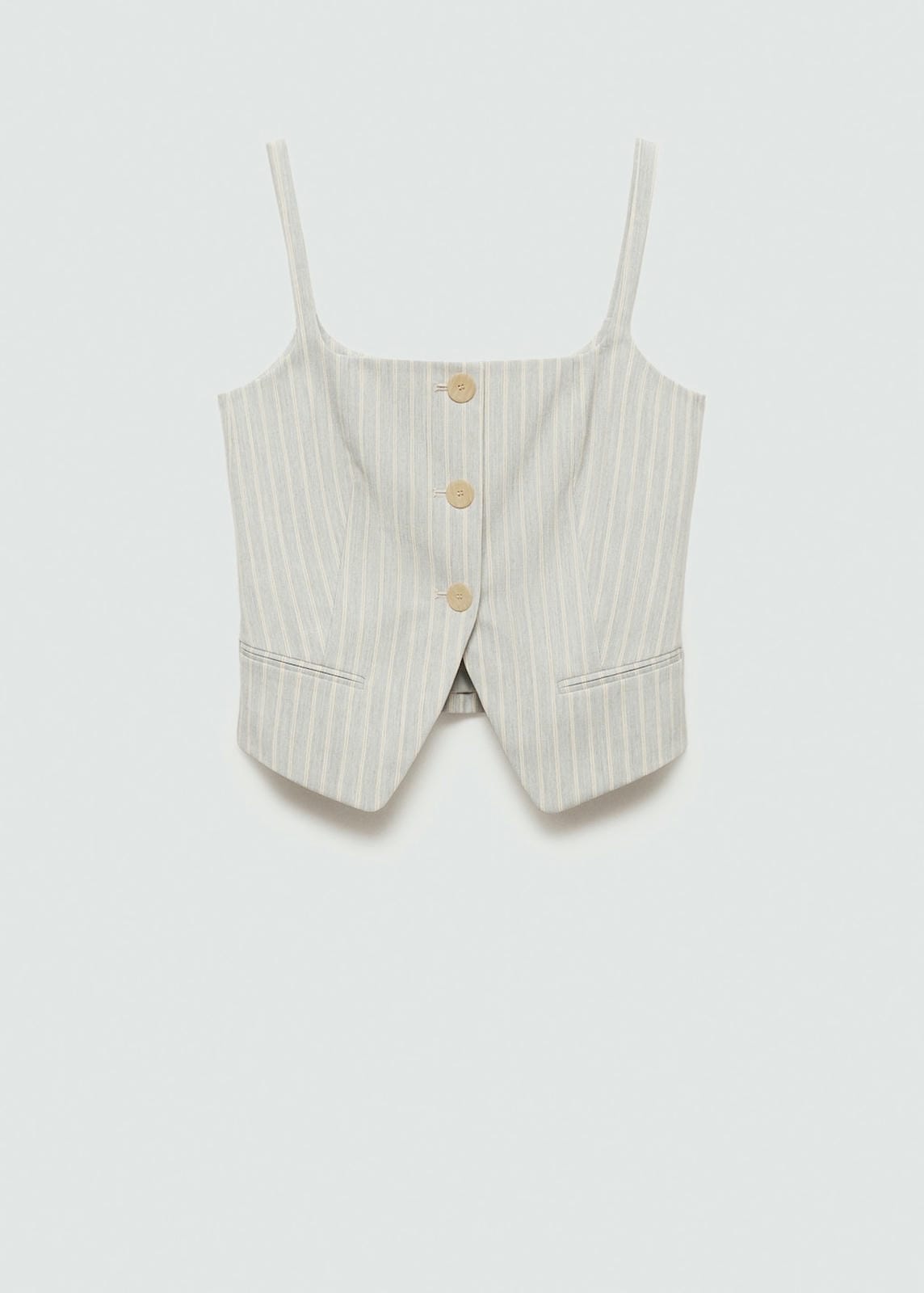 Flowy fabric. Straight design. Striped print. Square neckline. Sleeveless. Thin straps. Two front welt pockets. Inner lining. Co-ord. Front closure with buttonsProduct Code: 77073270-50