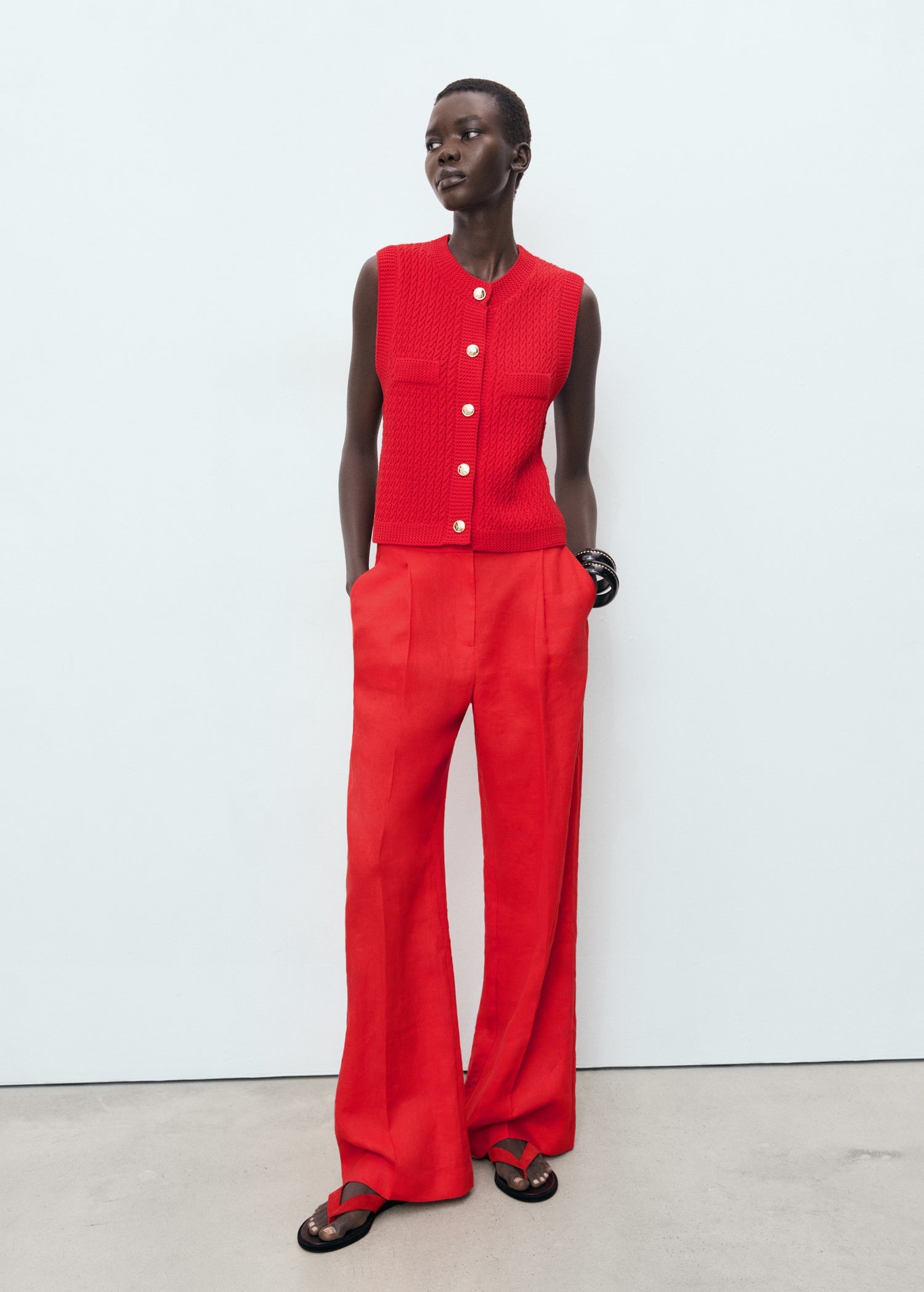 100% Cotton. Chunky knit fabric. Straight Design. Crew neck. Sleeveless. Wide straps. Two patch pockets on the chest. Button fastening at the front.Product Code: 17042916-70