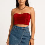 Primark velvet bandeau top in red