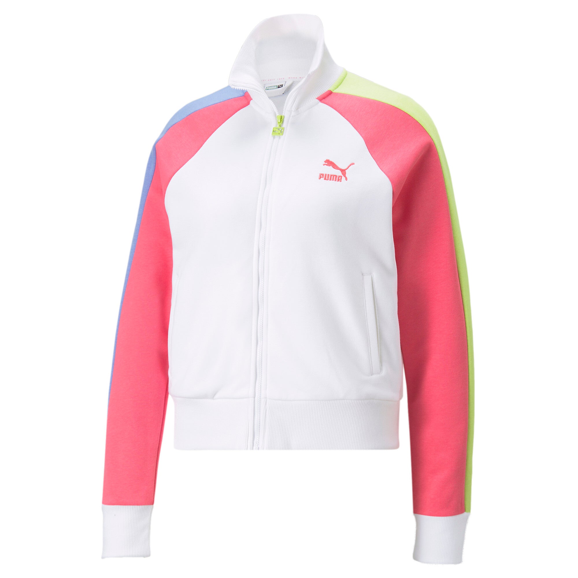 Puma T7 block track jacket in white and pink