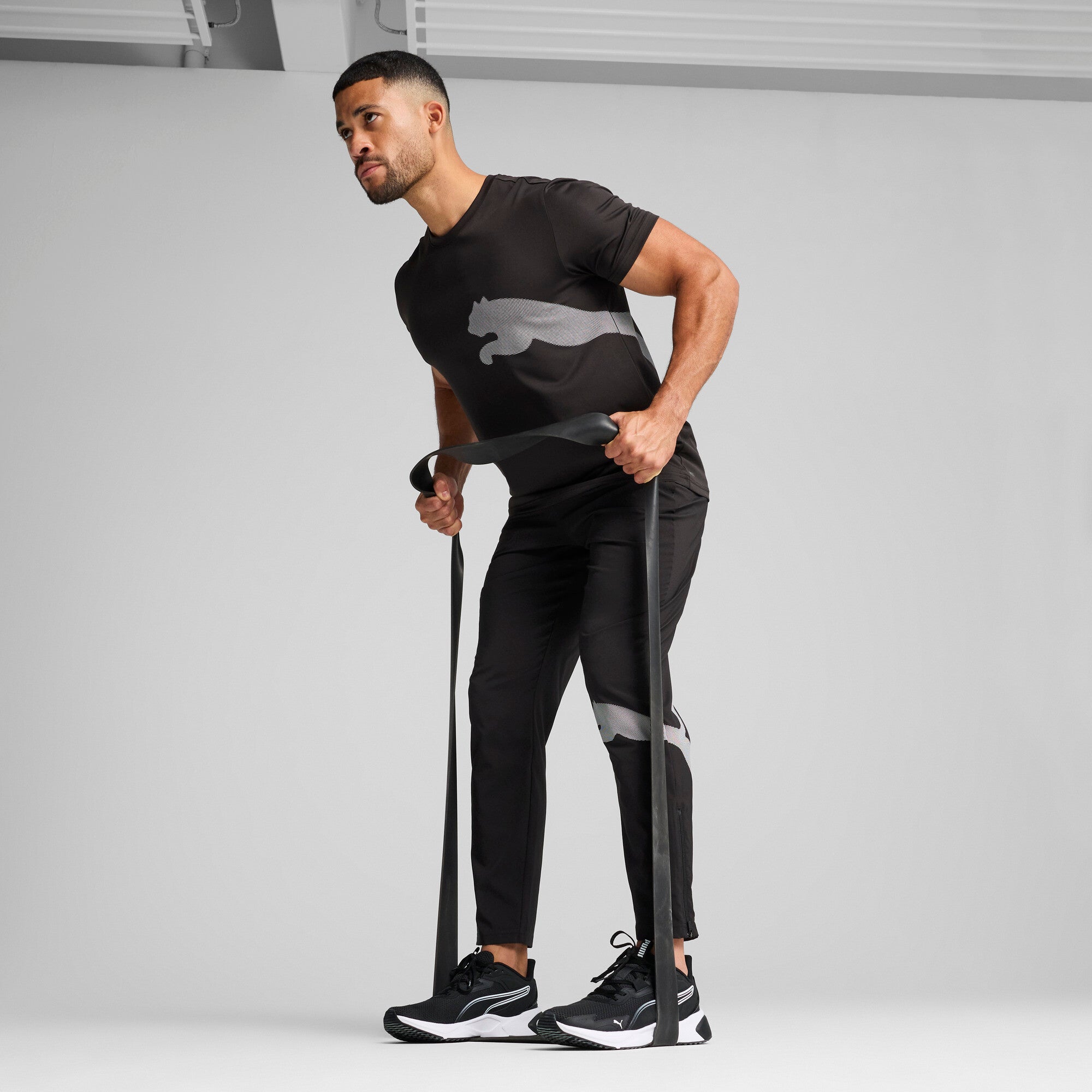 PUMA TRAIN ALL DAY big logo tee in black